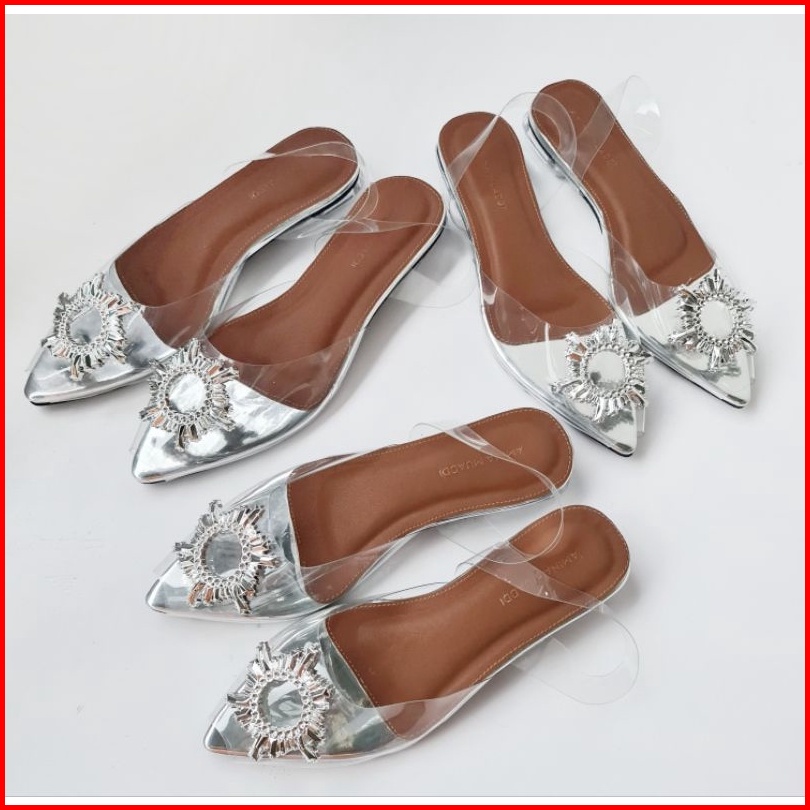 Amiina Muadii Flat Heels Crystal Transparant 3cm Box Polos -kw Local Made By Shoeponic