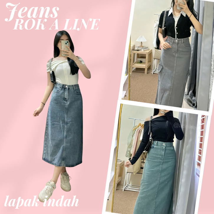 ROK JEANS WANITA HIGHWAIST A-LINE PANJANG 7/8 BASIC SKIRT JEANS 780 ROK WANITA KOREAN STYLE TERBARU ROK SPAN