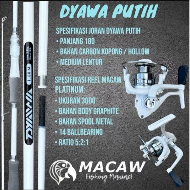 (PROMO) Set joran dyawa putih 180 carbon kopong dan reel Macaw Platinum 3000