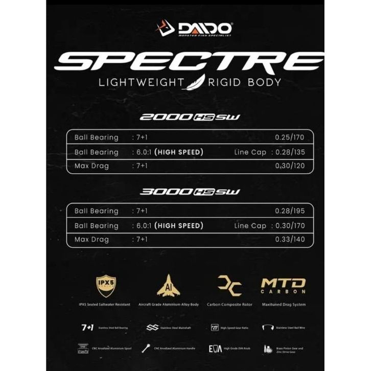 New Reel Daido Spectre Light Weight Rigid 7+1BB SW