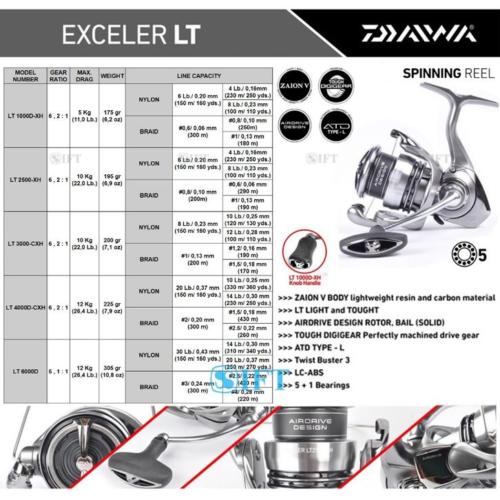 Reel DAIWA EXCELER LT | Power Handle Zaion V | 1000D s/d 6000D Kolam Sungai Rawa Laut [2023] Resmi