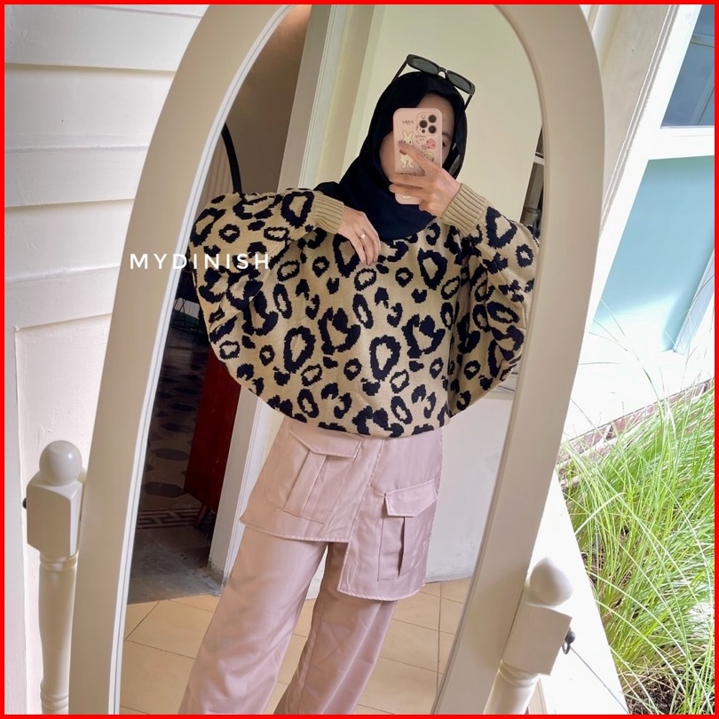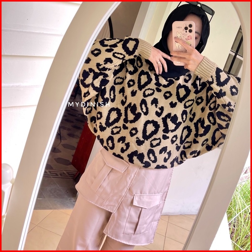 Lizzi Leopard Batwing - Atasan Rajut Wanita
