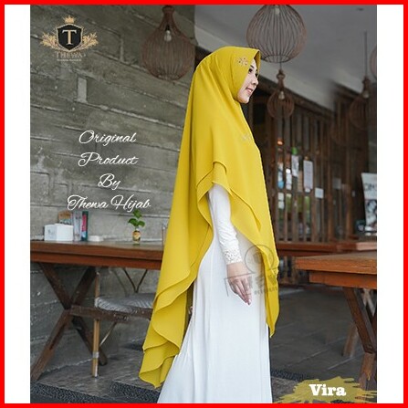 Thewa Kerudung Khimar Hijab Vira Jumbo Lancip 2layer Payet Ceruty