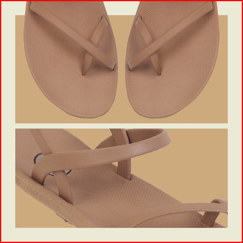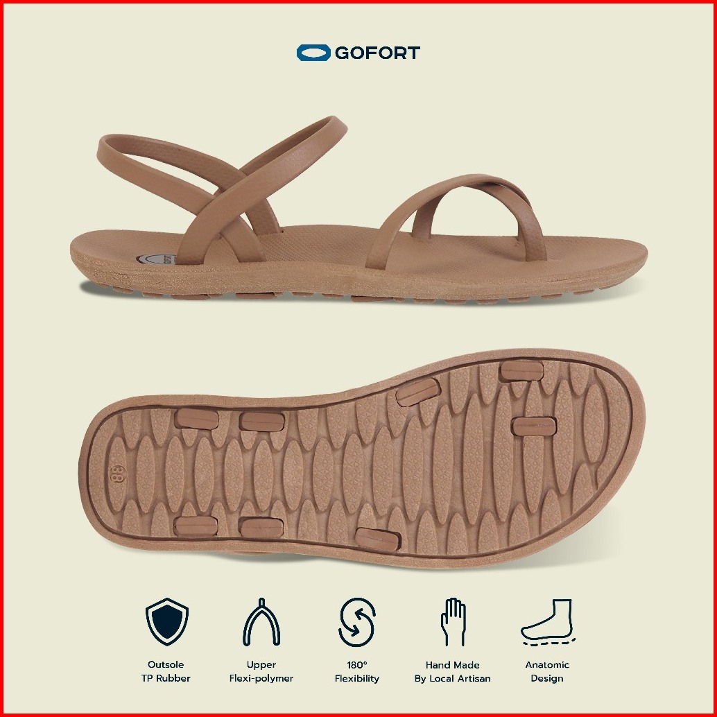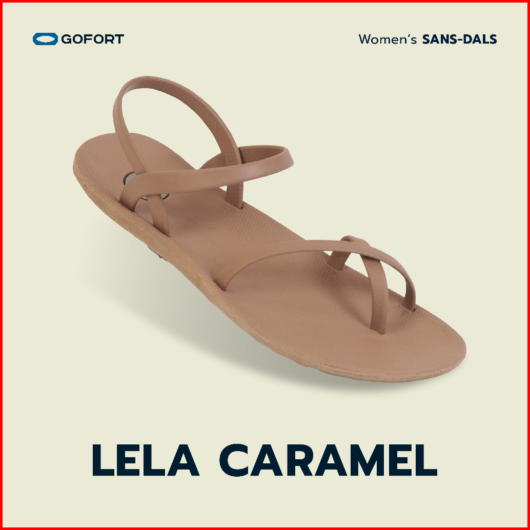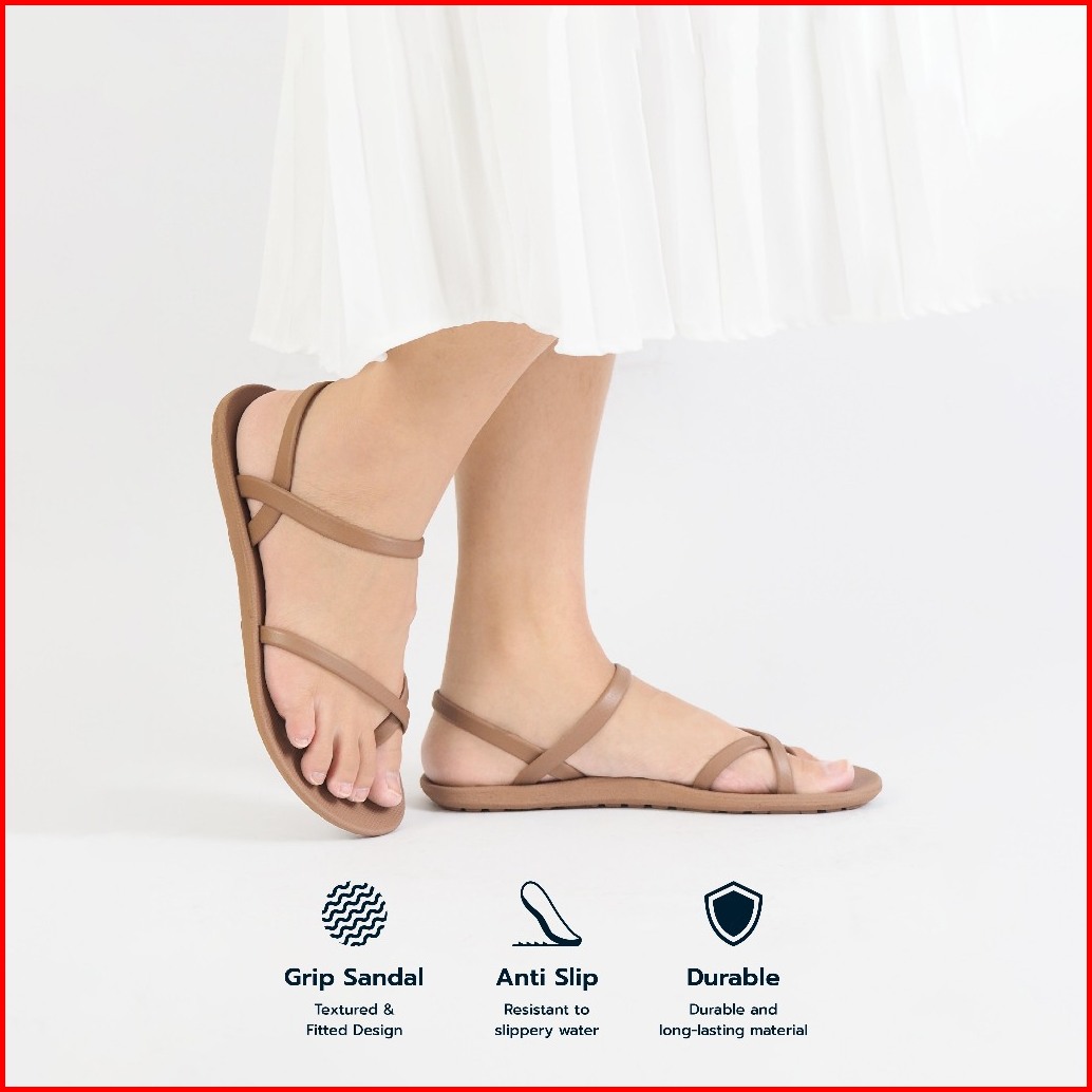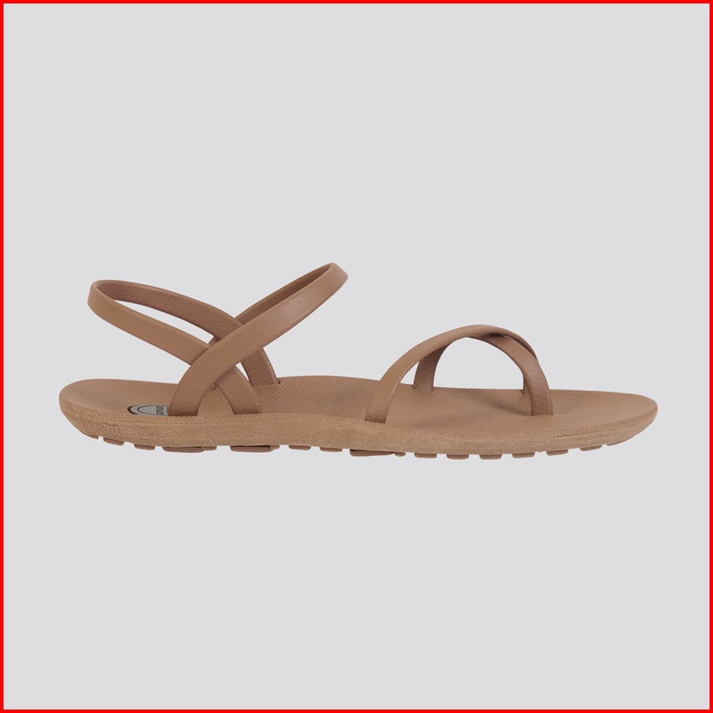 Gofort Lela Caramel Sandal Karet Wanita Flat Tali Silang Slip On Casual Ringan Nyaman Kekinian