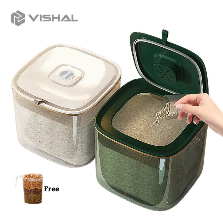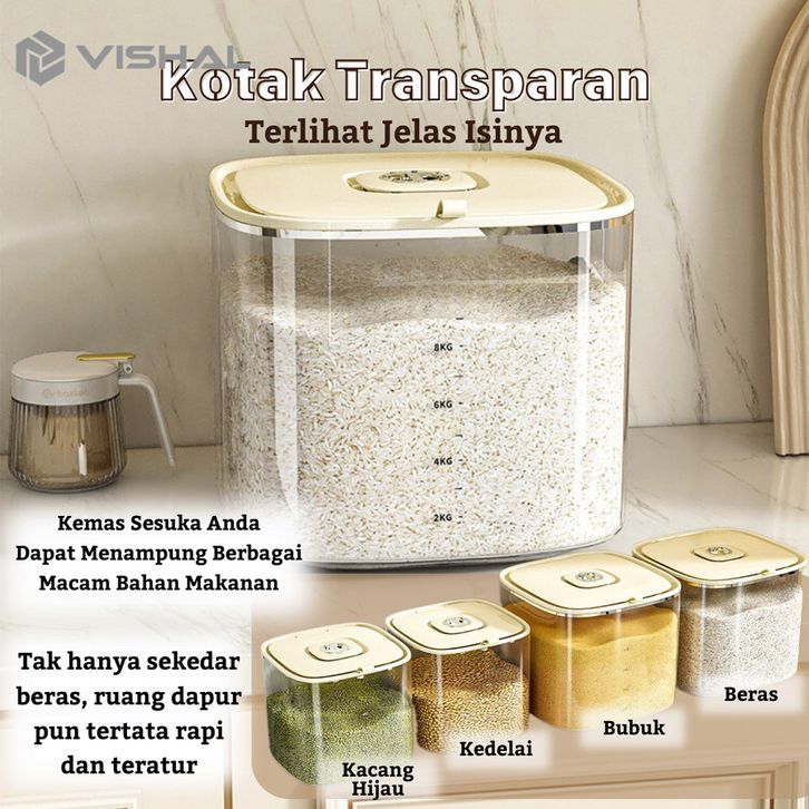 VISHAL Kotak Penyimpanan Beras Bahan Makanan Serbaguna Dispenser Beras Wadah Beras Kapasitas 5Kg VZ-001