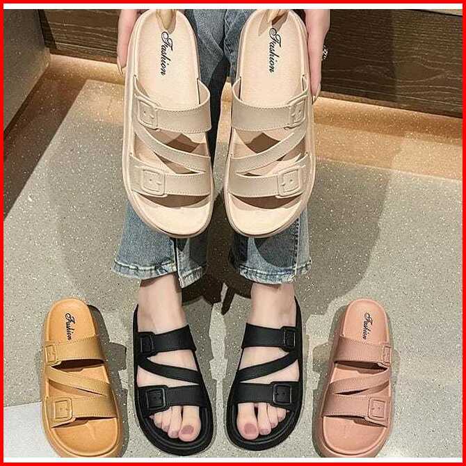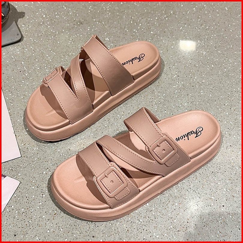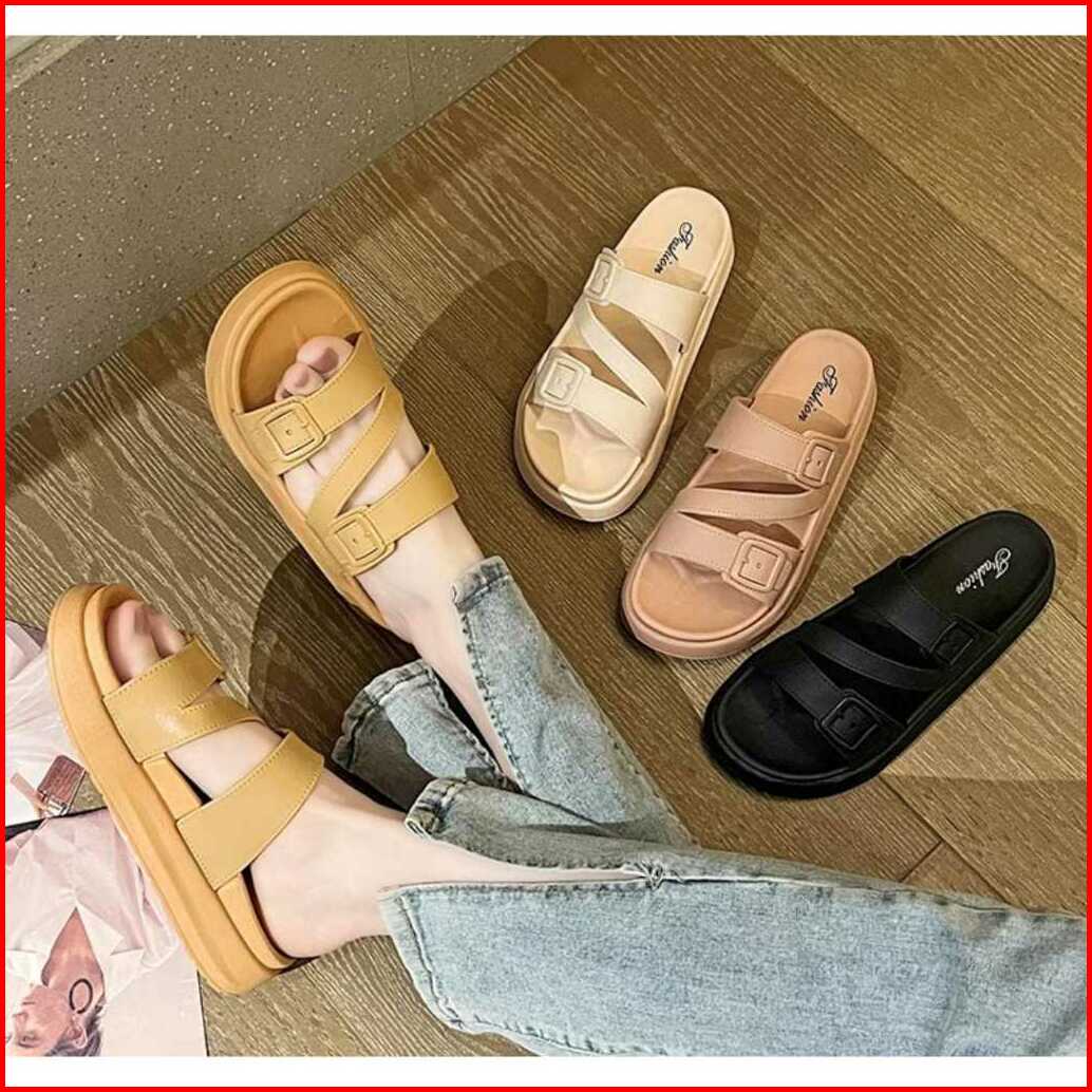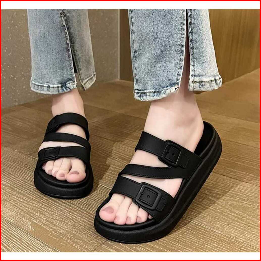 Sandal Slip On Wedges Jelly Wanita Motif Kait Samping Kekinian Tg1981