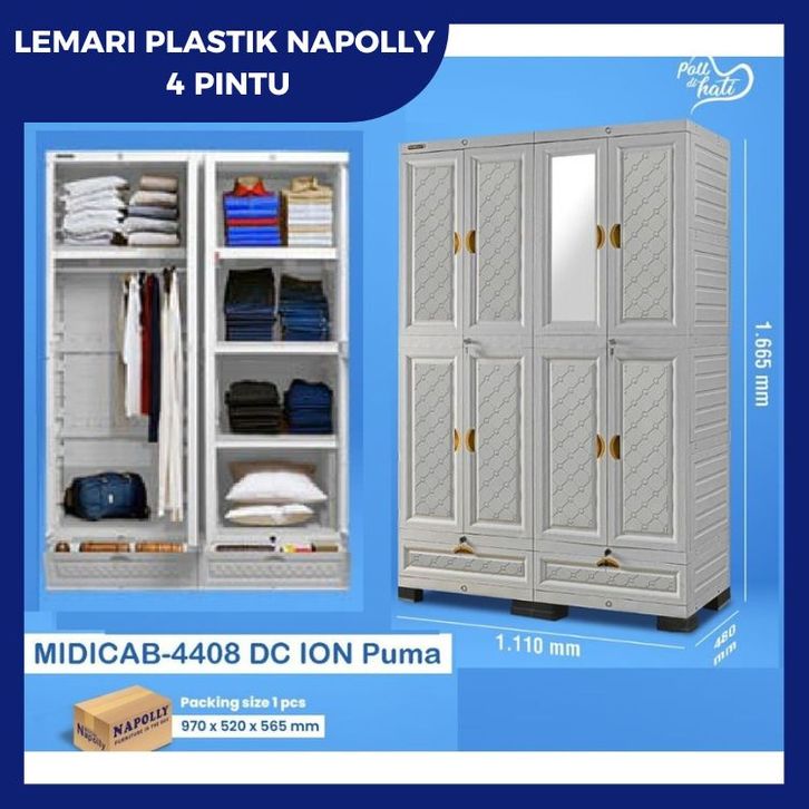 [Mall] Lemari Plastik NAPOLLY 4 Pintu Super Jumbo Gantung + Kaca Cermin & Kunci MIDICAB 4408 DC ION PUMA