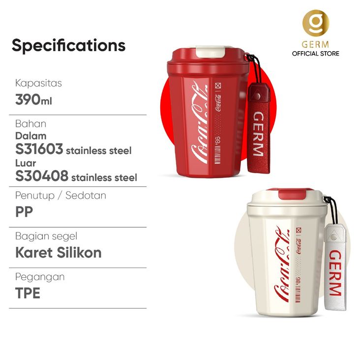 GERM Vacuum Termos Cup S31603 Tahan Karat Kapasitas Portabel With Strap 390ML Cangkir Kopi