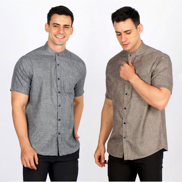 Simple Perfect Kemeja Pria Lengan Pendek Kerah Shanghai Polos | Kemeja Koko Solid Two Tone