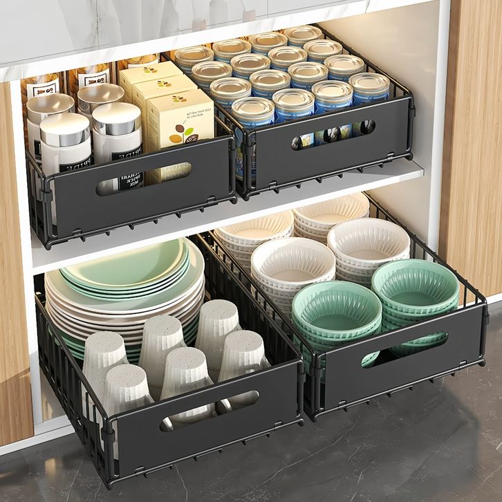 Homeus Rak Piring Rak Dapur Peralatan Makan Pengering Piring Lemari Dapur Tarik Keluar Rak Piring Penyelenggara Rak Peny