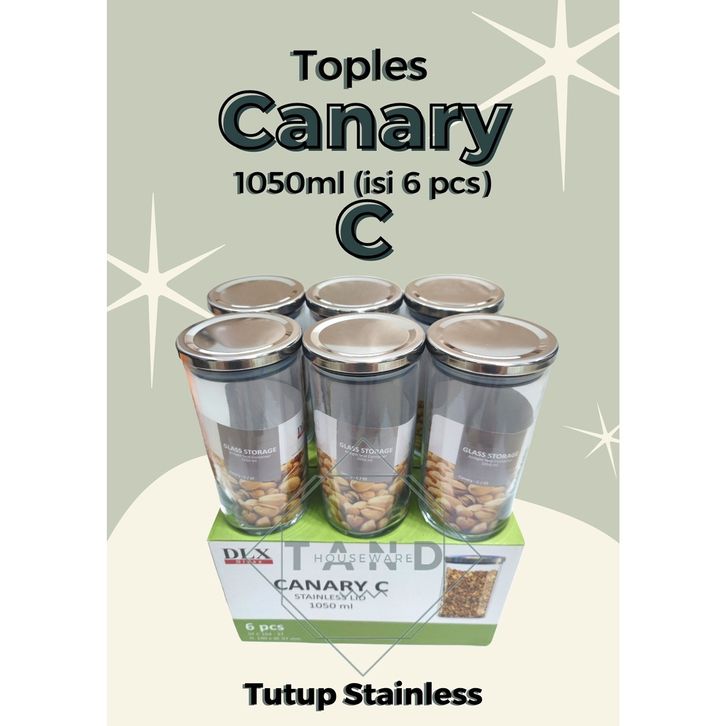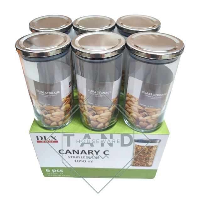 TERLARIS TOPLES KACA BULAT KEDAP UDARA CANARY C SET UKURAN 1050 ML (6PCS) TUTUP STAINLESS