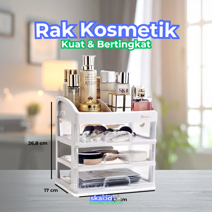 MURAH Rak Kosmetik / Rak Make Up Susun Plastik 3 Laci / Rak Serbaguna 3 Susun Skincare Make up
