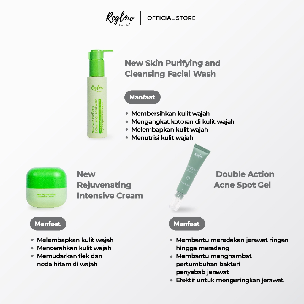 Brightening Reglow Skin Purifying and Cleansing Facial Wash / Reglow Rejuvenating Intensive Cream / Reglow Double Action