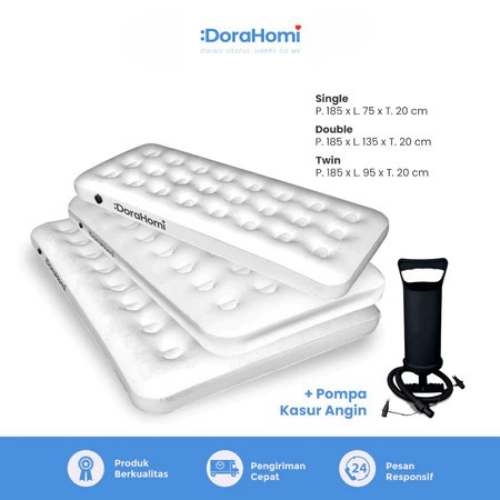 DORAHOMI KASUR ANGIN 185X135X20 185X95X20 185X75X20 CM PVC PLASTIK KARET SINGLE TWIN DOUBLE AIR BED MATRAS + POMPA