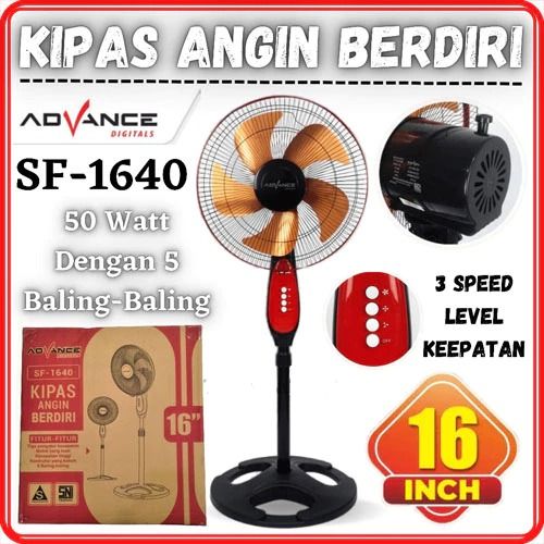 KIPAS ANGIN BERDIRI ADVANCE SF-1640 // STAND FAN ADVANCE SF-1640 ANGIN KENCANG // KIPAS BERDIRI 5 BALING BALING SF1640