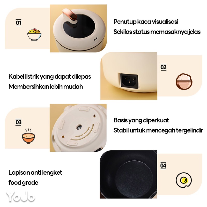 Panci Listrik Serbaguna 1.5 Liter Anti Lengket/ Panci listrik Rice Cooker beras 300W multifungsi / Penanak Nasi Mini