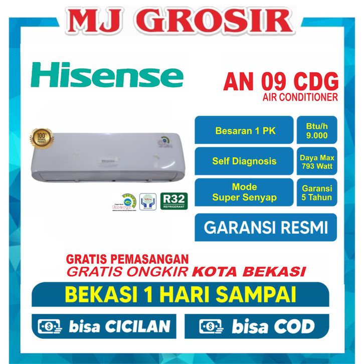 AC HISENSE AN 09 CDG AC 1 PK + PASANG R32 AN09CDG LOW WATT