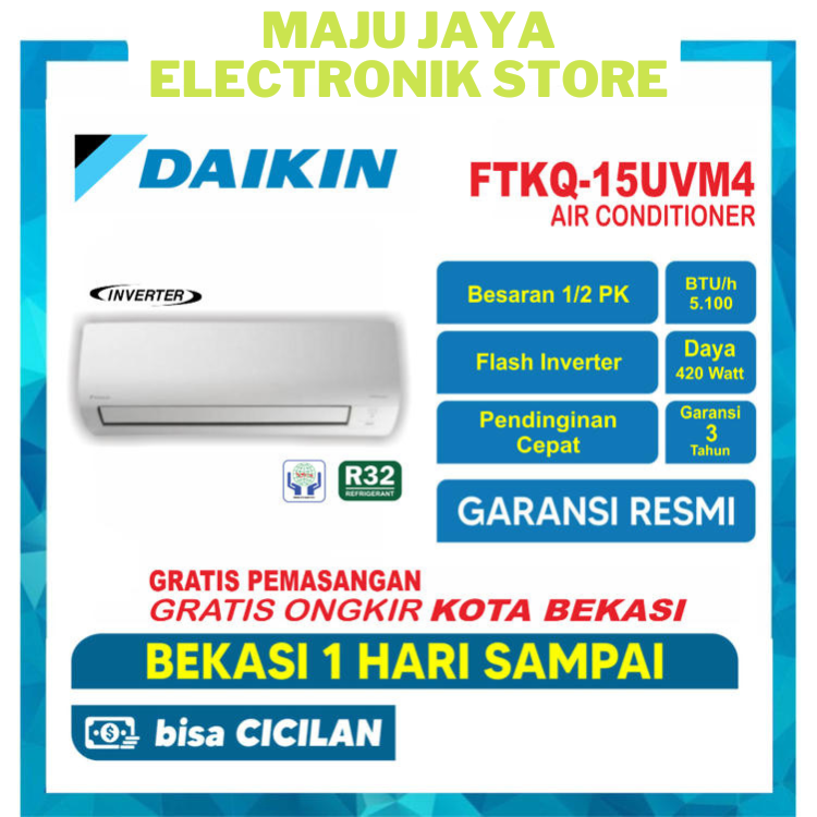 AC DAIKIN FTKQ 15 UVM4 0.5 PK 1/2 PK + PASANG R32 FLASH INVERTER