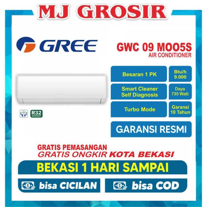 AC GREE GWC 09 MOO5S 1PK + PASANG R32 STANDARD SUPER COOL