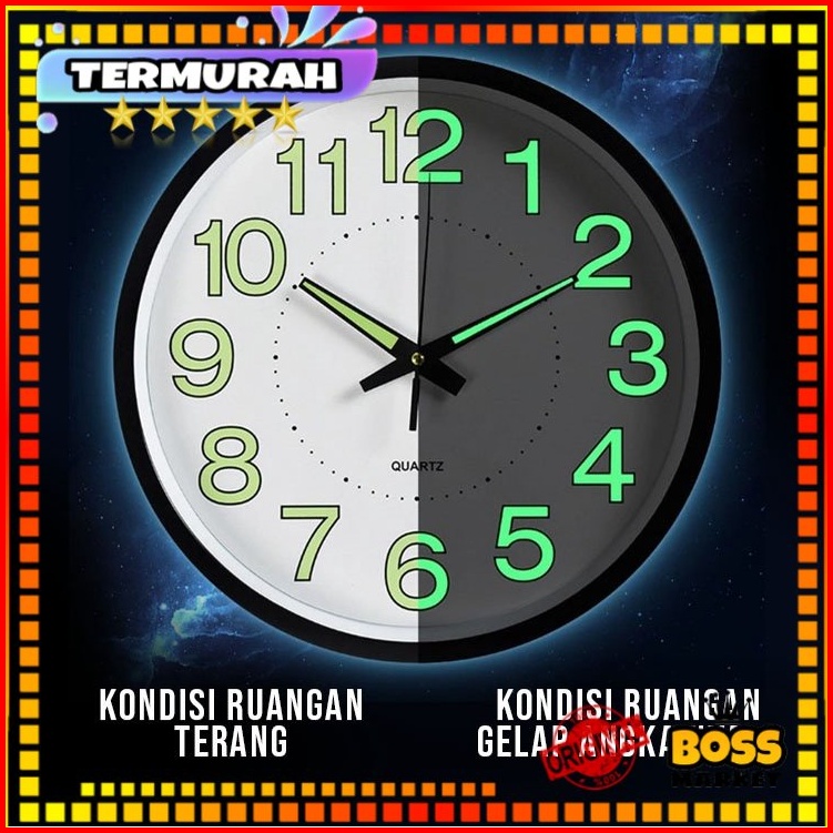 Jam Dinding Nyala Dalam Gelap Bulat Quartz Detik Berputar Tidak Berdetak Jam Tidak Berisik Creative Glow In The Dark 30c