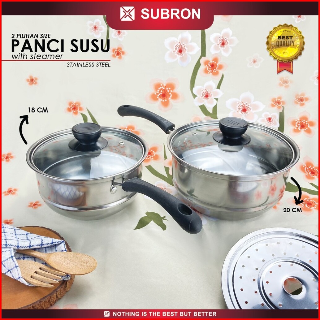 Subron Panci Susu Milk Pot Steamer Kukus 18cm 20cm Stainless Kukusan Makanan Masakan