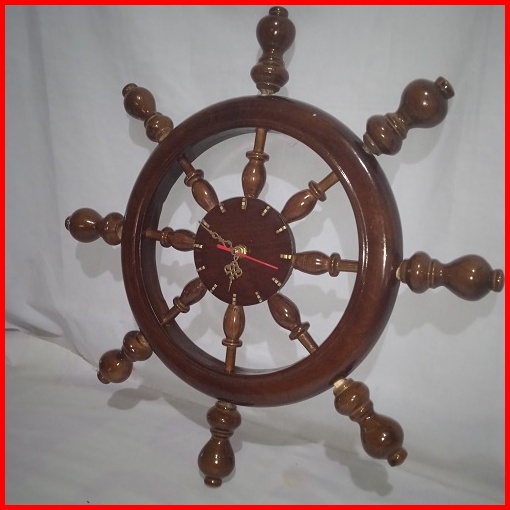 Hiasan Dinding Kayu Jati Jam Dinding Model Kemudi Nakhoda Kemudi Kapal Laut