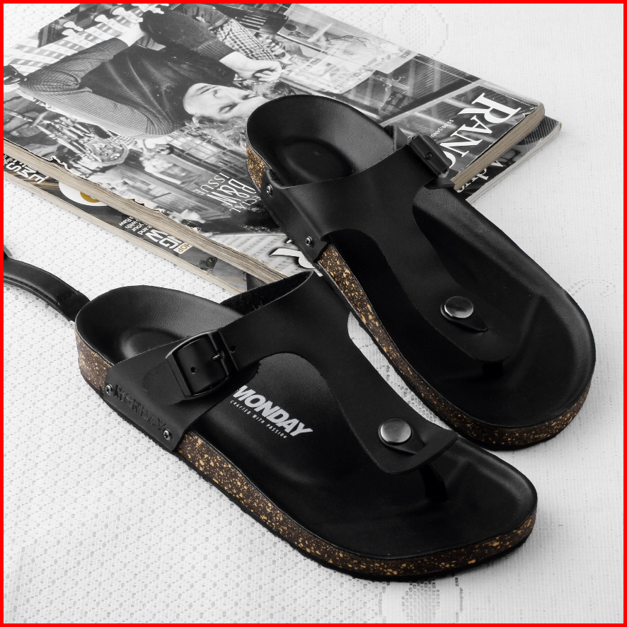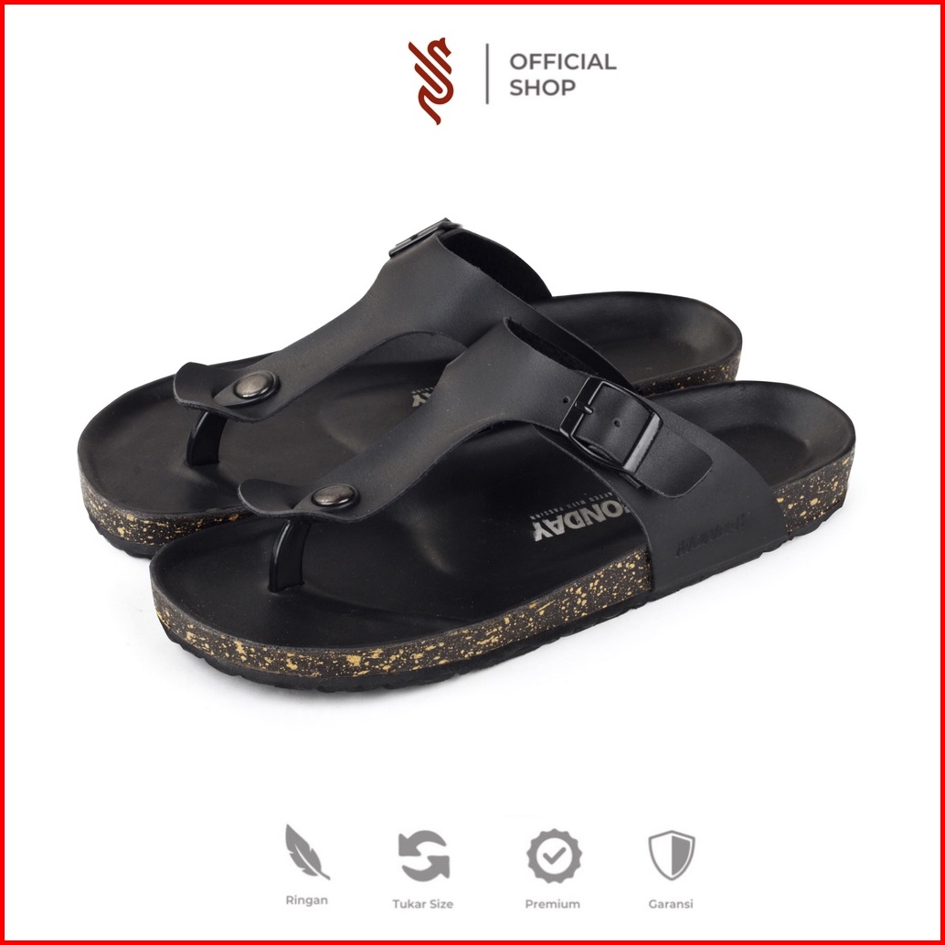 Asta Full Black - Sandal Jepit Pria Casual Kulit Distro Sendal Capit Kekinian Terbaru Laki Laki Cowok Kasual Fashion Han