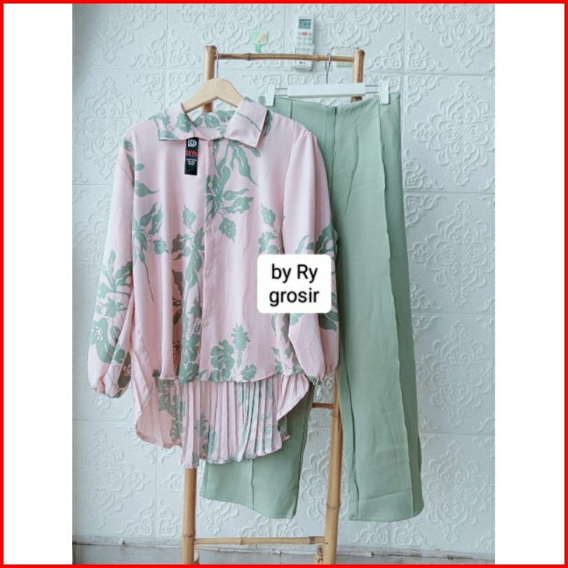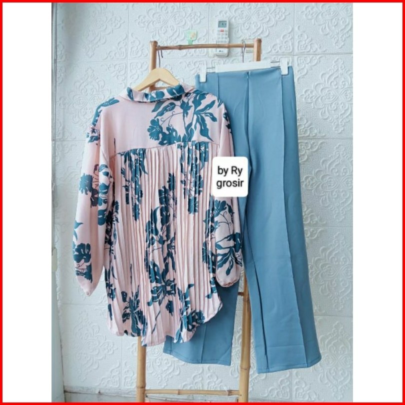 Setelan Wanita Kemeja Plisket Kulot Scuba Ukuran Standar Dan Jumbo Kekinian