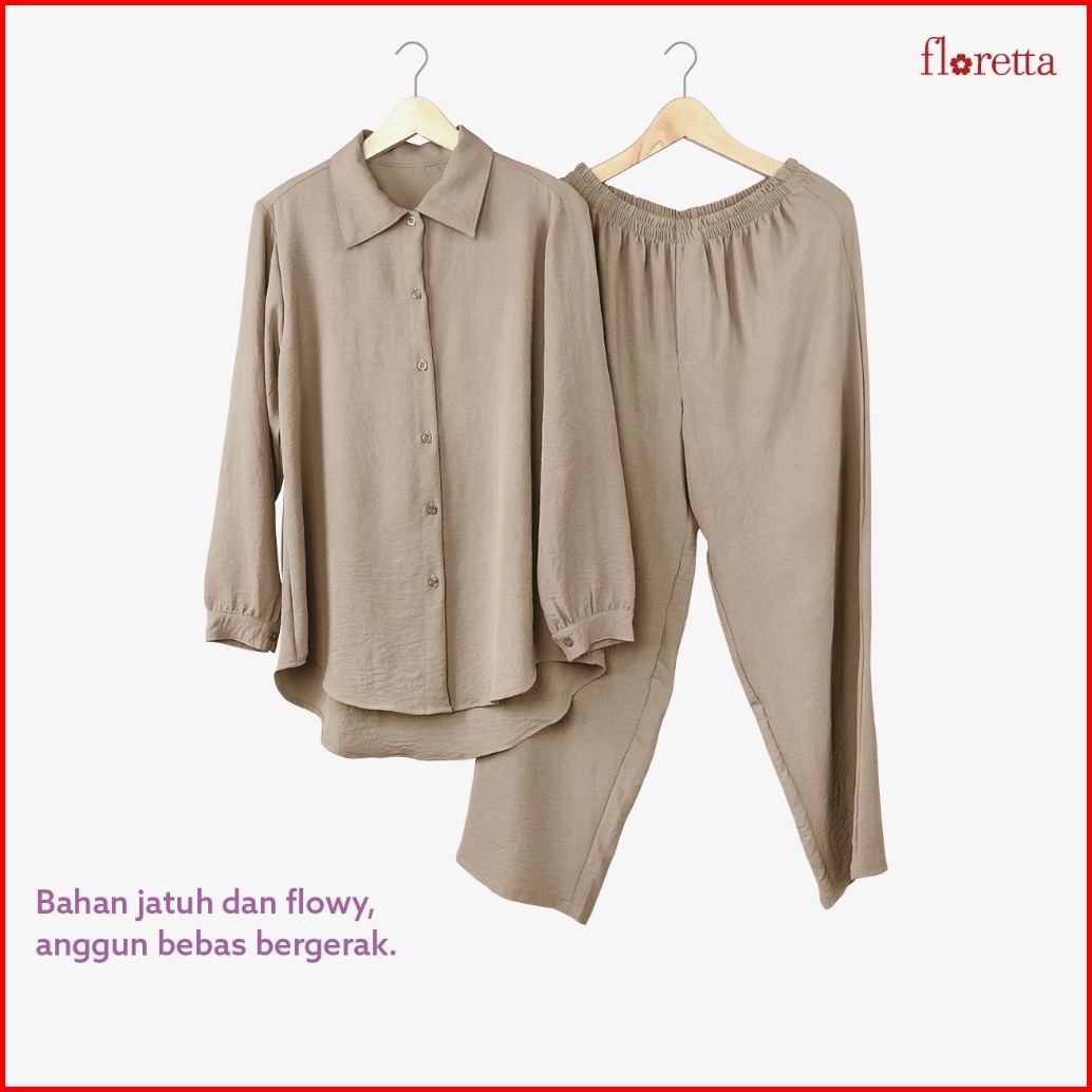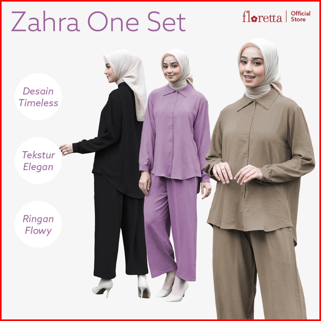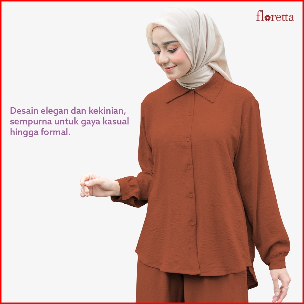 Kemeja Blouse Baju One Set Wanita Kekinian Lengan Panjang Crinkle Busui Zahra Floretta