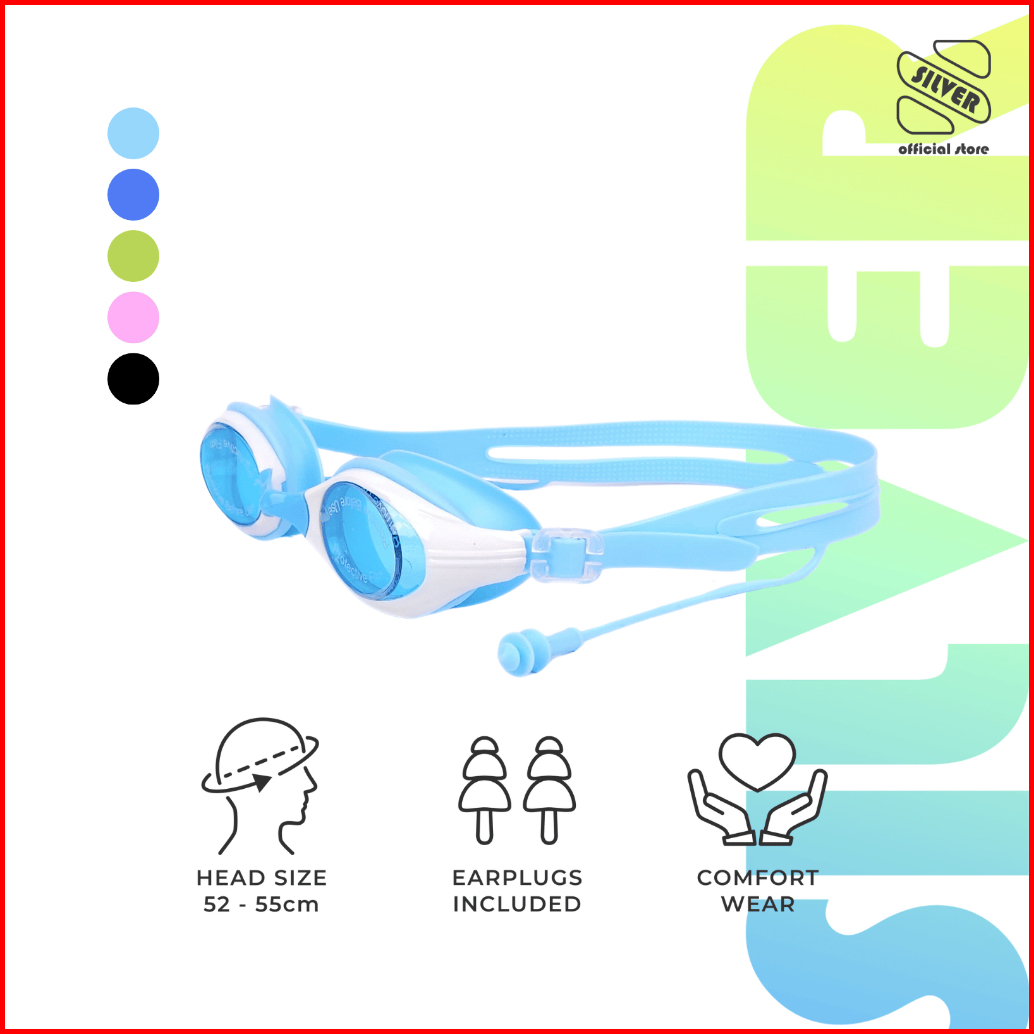 Silver Kacamata Renang Anak Dengan Earplugs Kids Swim Goggles With Earplugs - 67280.931