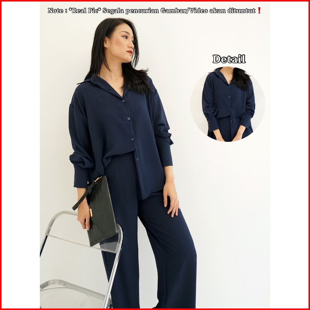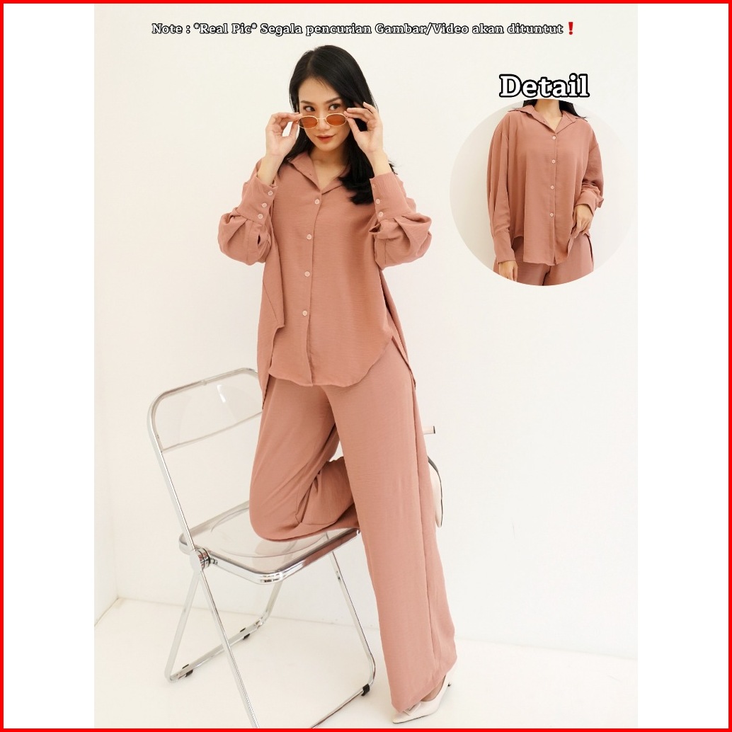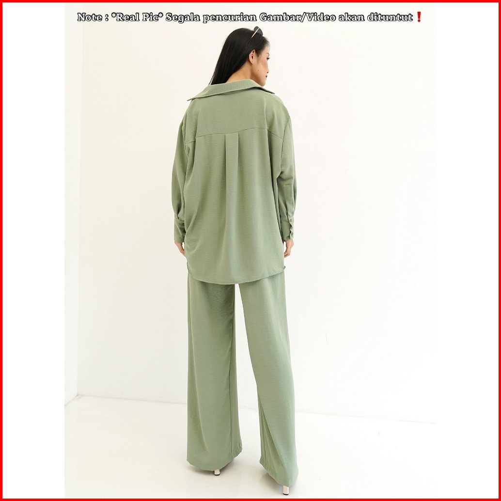 Red-metha Set 9023 Atasan Bawahan Setelan Kemeja Oversize One Set Celana Panjang Lengan Panjang Wanita Long Set Crinkle