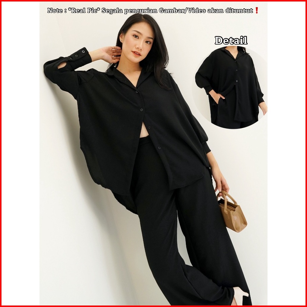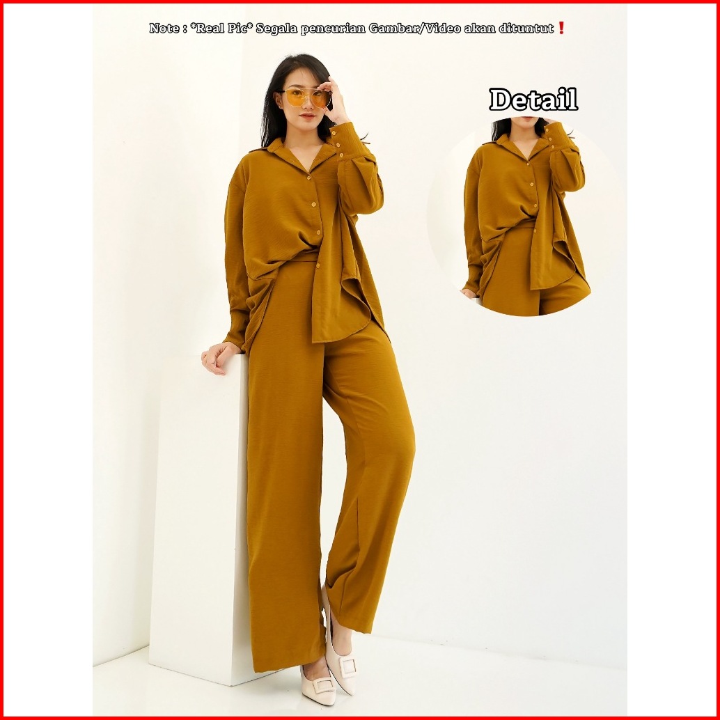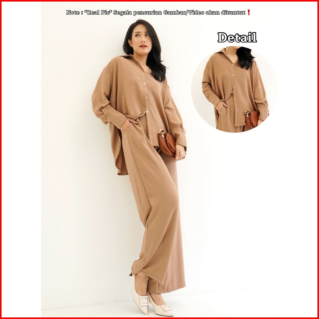 Red-metha Set 9023 Atasan Bawahan Setelan Kemeja Oversize One Set Celana Panjang Lengan Panjang Wanita Long Set Crinkle