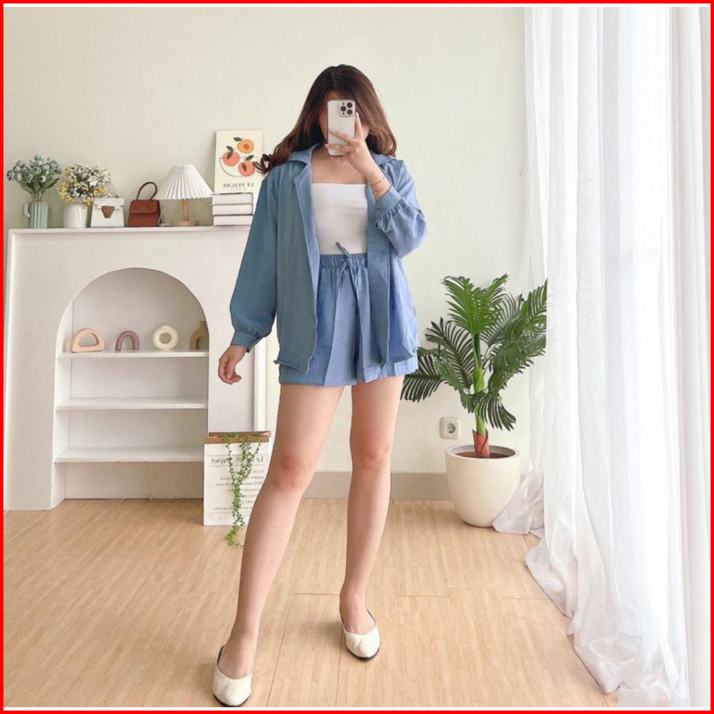 Toply Shop Setelan Lexa Krinkle Set Kemeja Oversize Celena