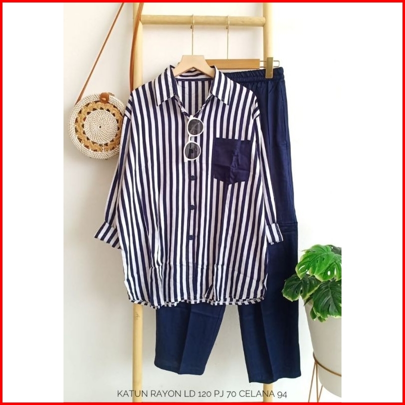 Setelan Kemeja Premium Setcel Rayon Twill Jumbo Oneset Sultan
