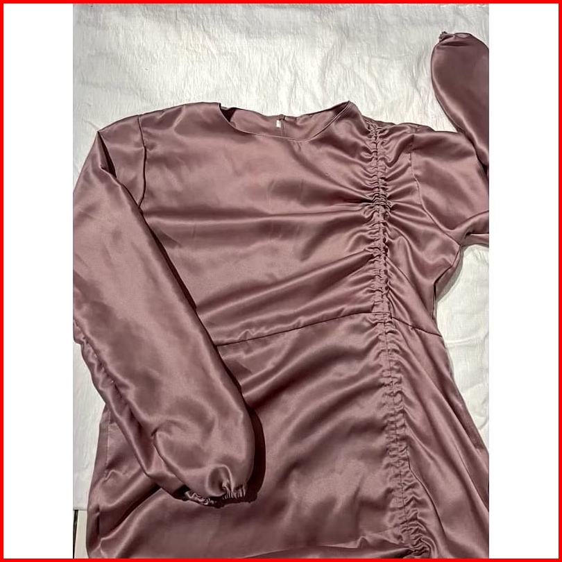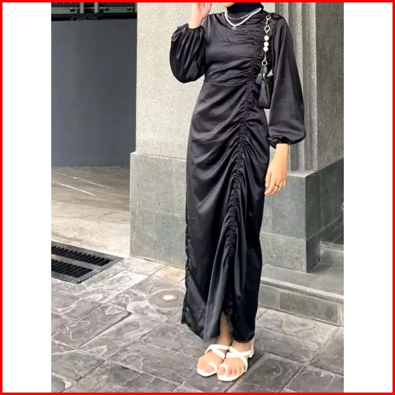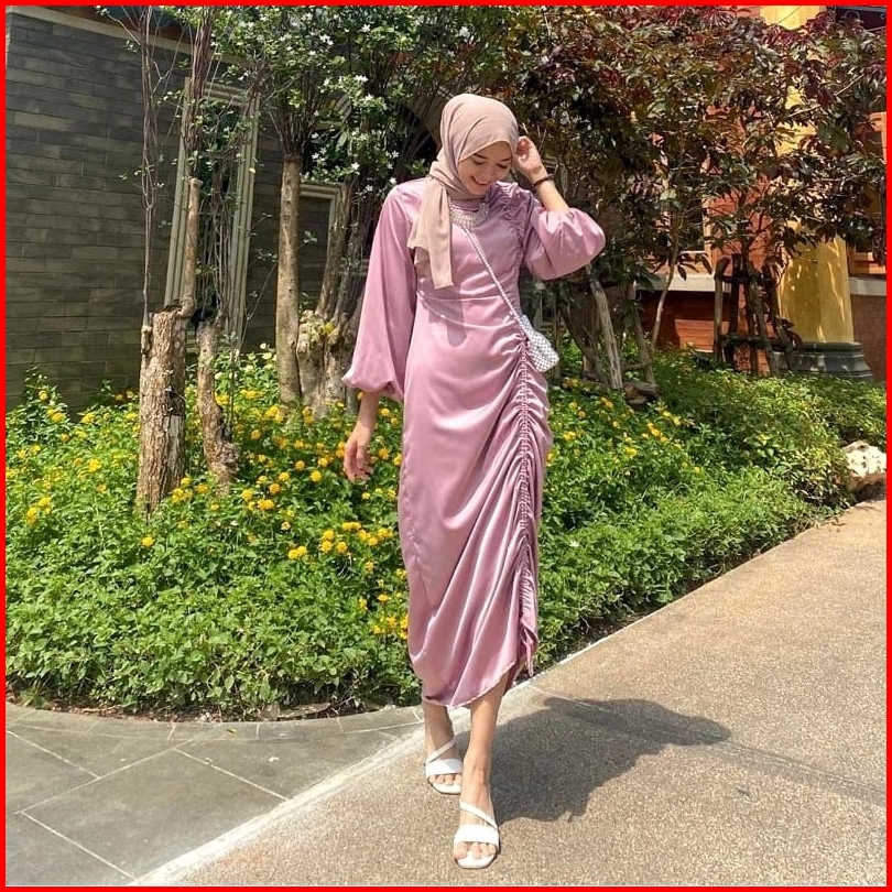 New Arrival Dress Satin Korean Dress Lebaran Kondangan Lengan Panjang Dress Satin Muslim Hijab Friendly Velvet Terbaru D