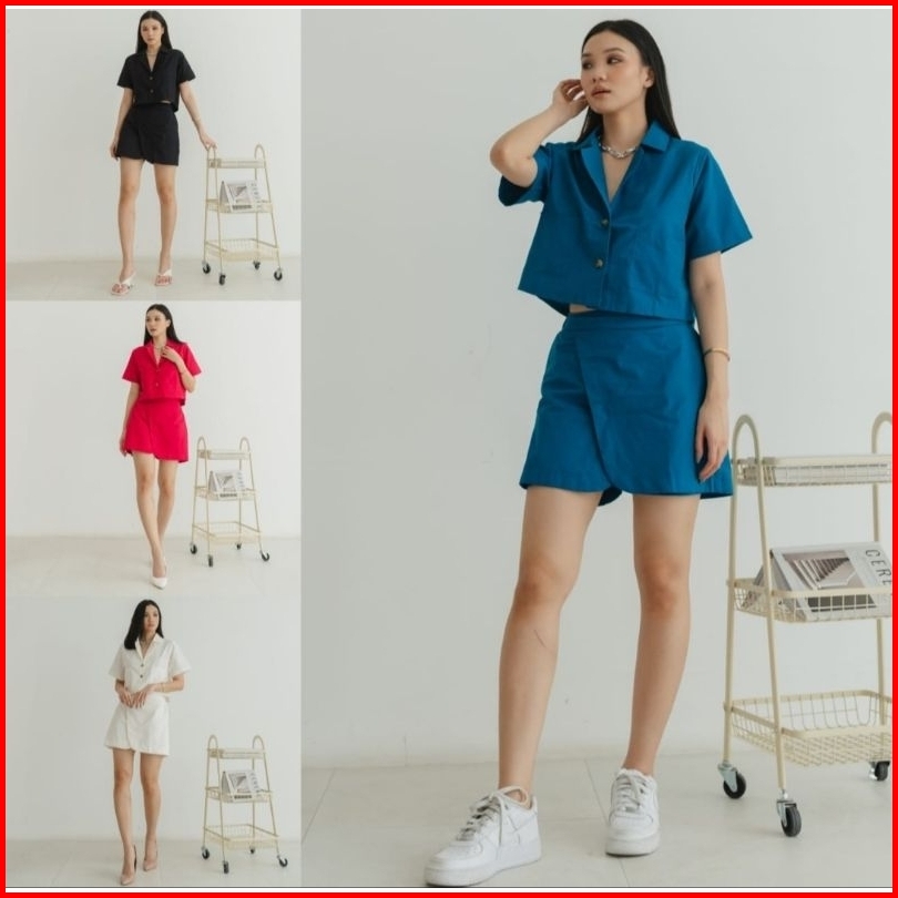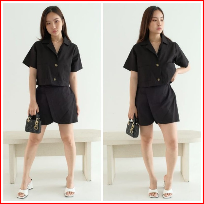 Super Sale Termurah Best Seller Premium Kirran 2 In 1 Linen Set Button Pocket Collar Shirt With Short Skort Setelan Keme
