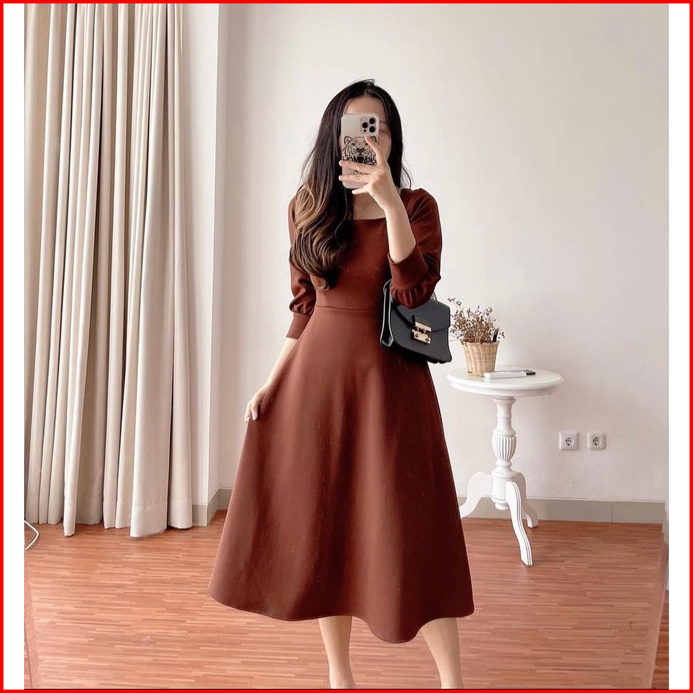 Aurora Dress - Dress Simple Korean Style Bahan Scuba Premium