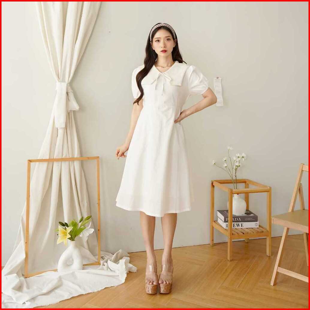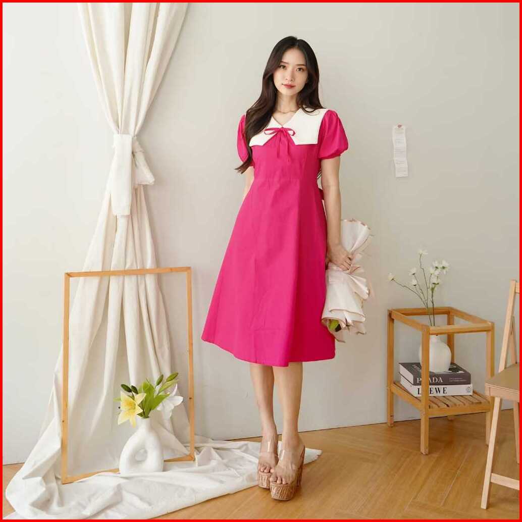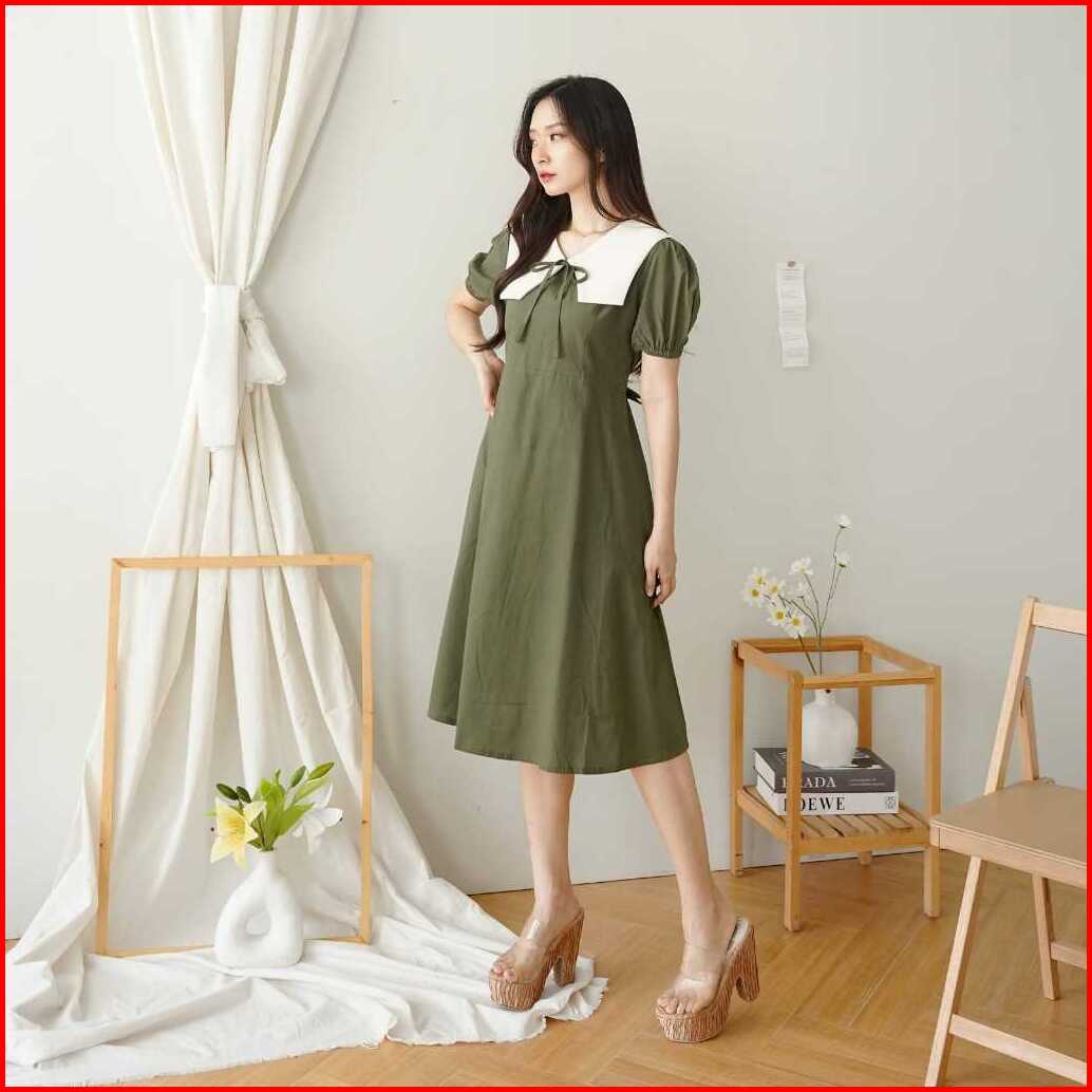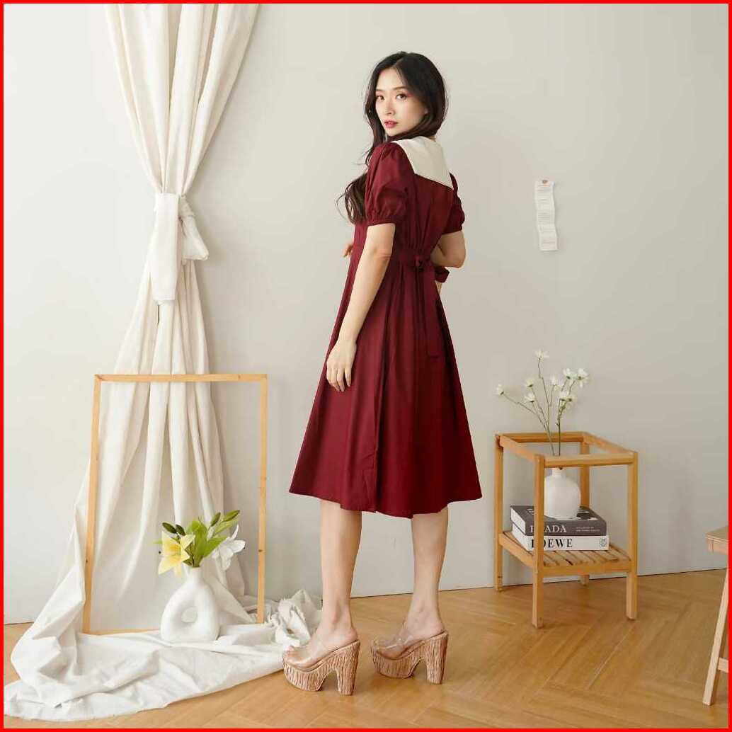 Aenor Cloth - Norine A Line Dress Midi Ada Big Size Premium Cotton Maroon Green White Black Dress Natal Basic Vintage Ko