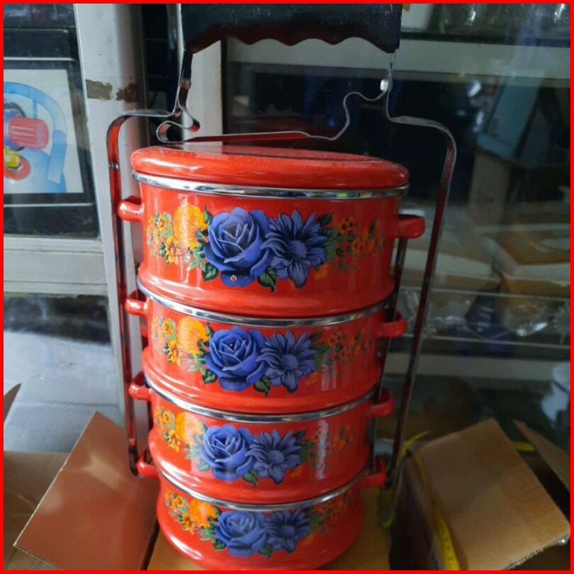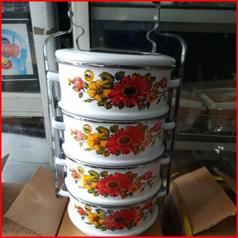 Rantang Panda Enamel Ukuran 14cm Susun 4 Maspion