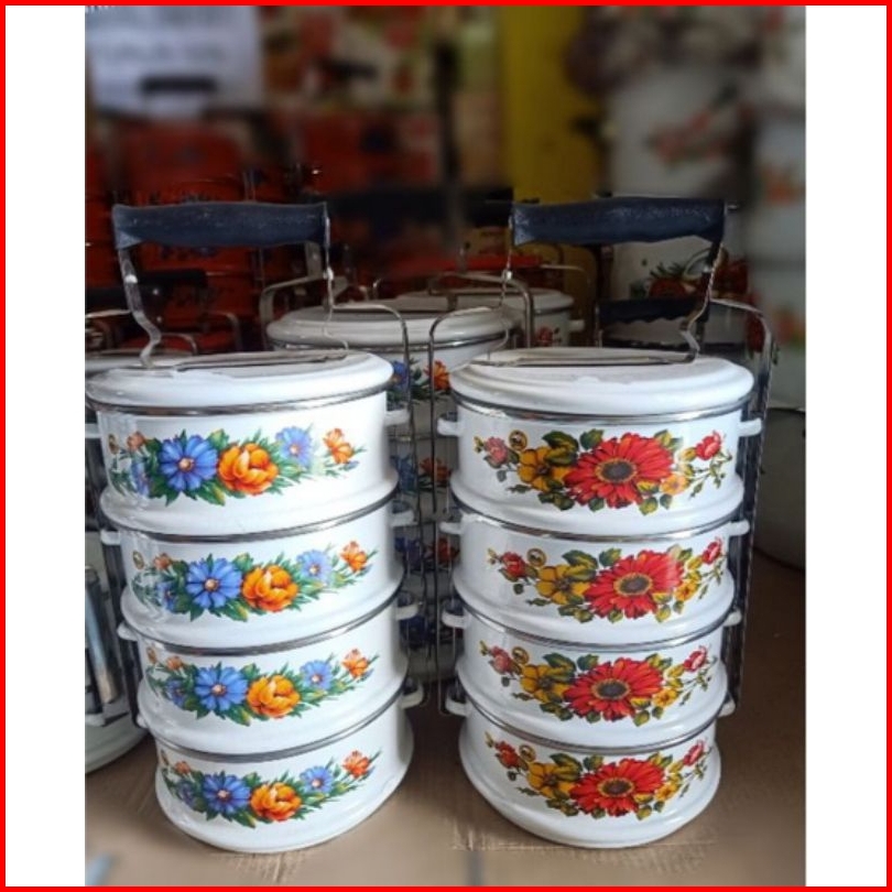 Rantang Enamel Panda 18 4 24 4 Putih Dan Merah Enamel