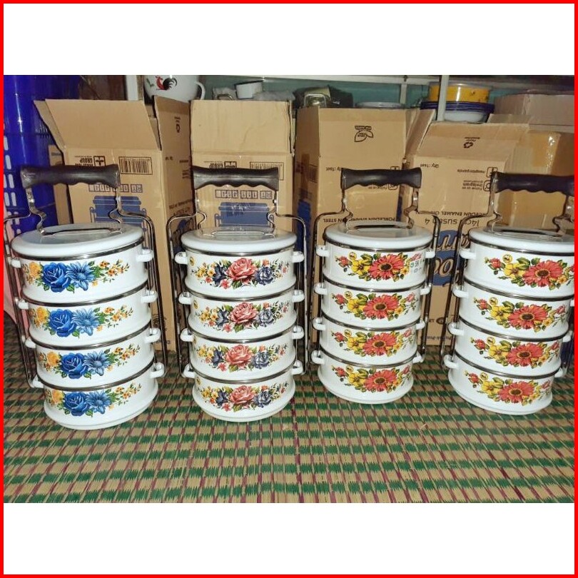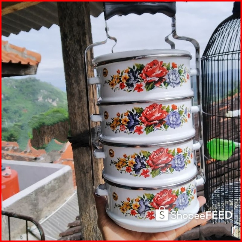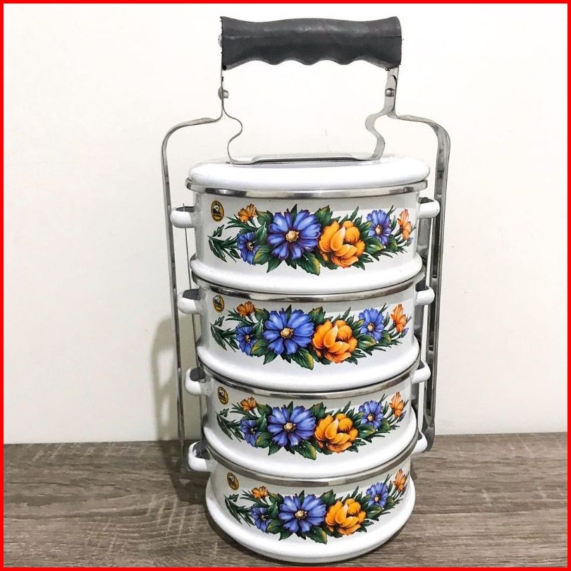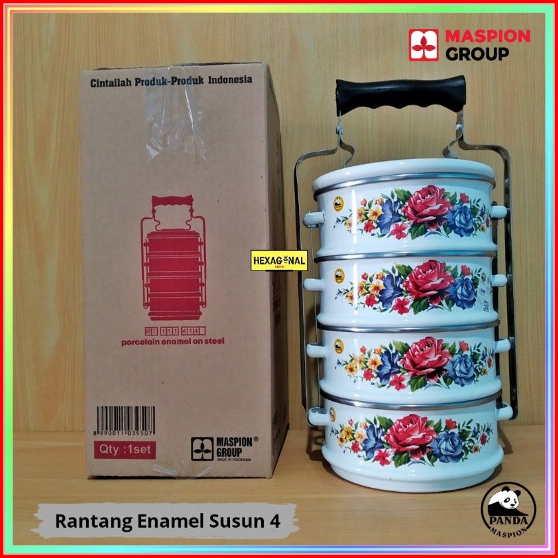 Rantang Enamel Maspion Panda 14 Cm Susun 4 Warna Putih