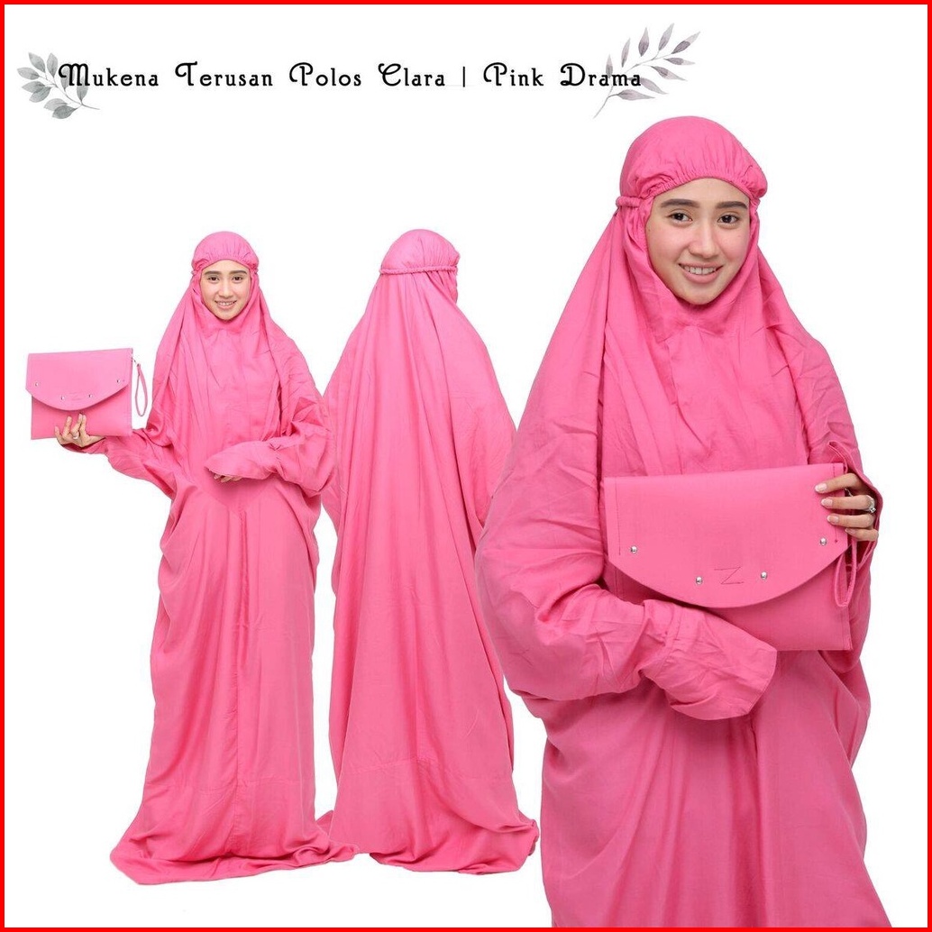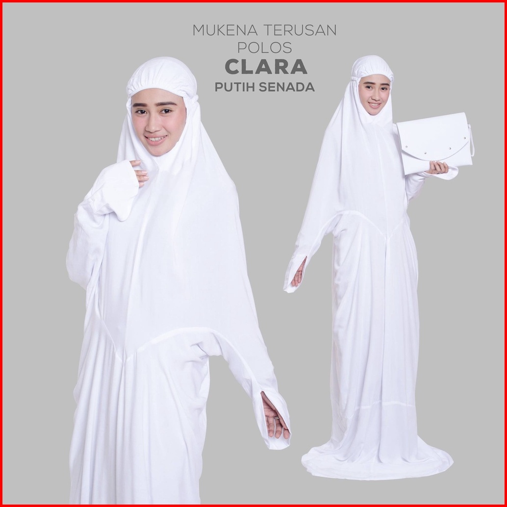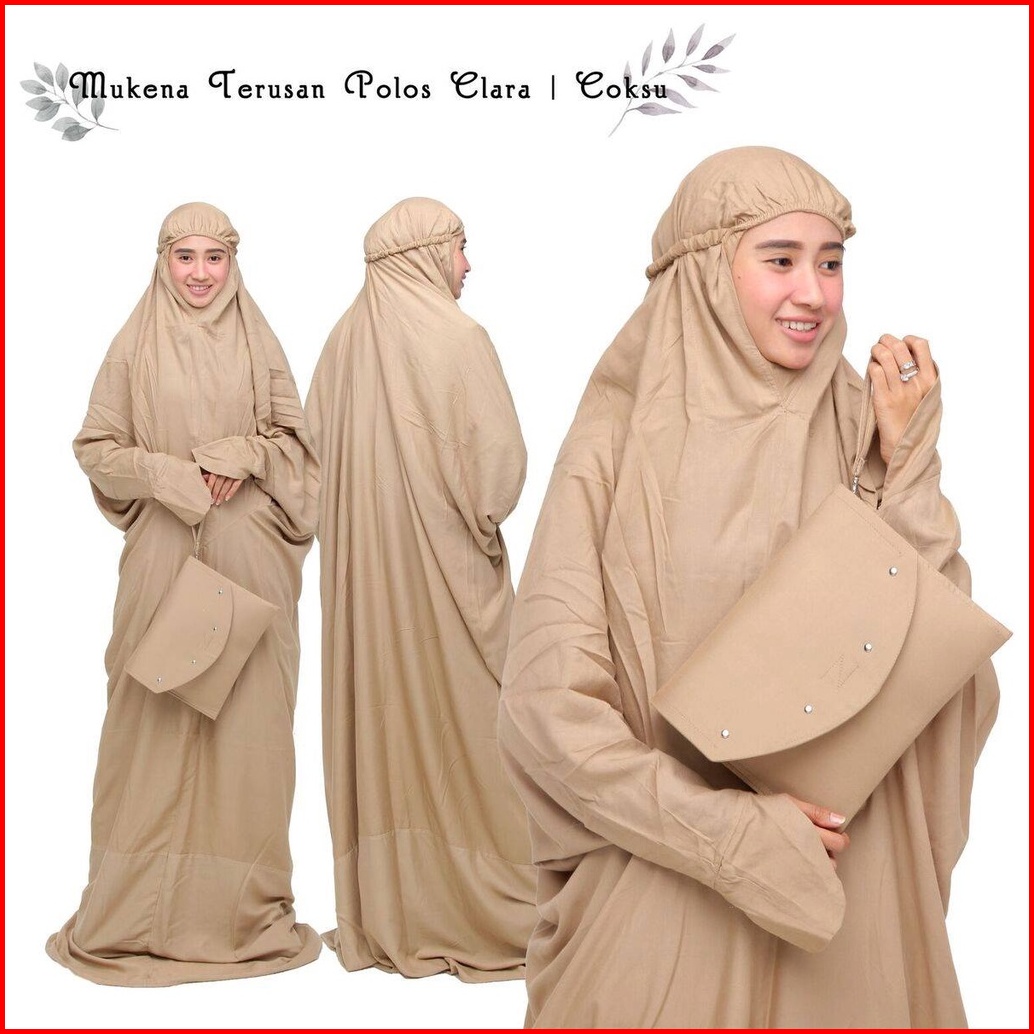 Leesy.id - Mukena Dewasa Jumbo Terusan Rayon Super Adem Include Tas Motif Polos Clara
