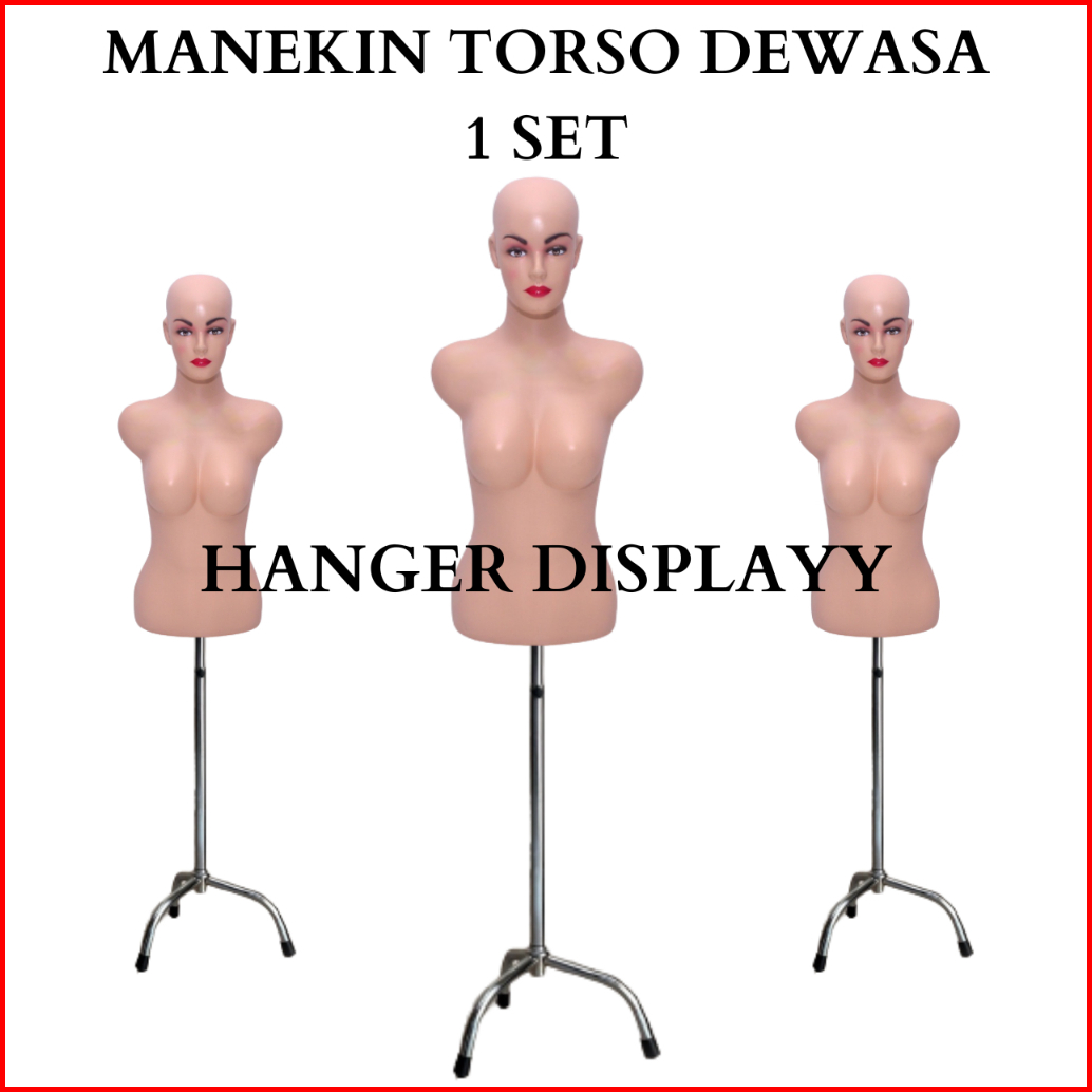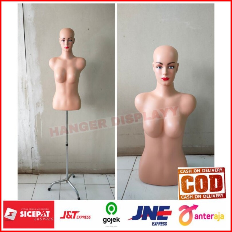 Patung Manekin Body Cewek Dewasa Torso Botak Manekin Wanita Setengah Badan Kaki Besi