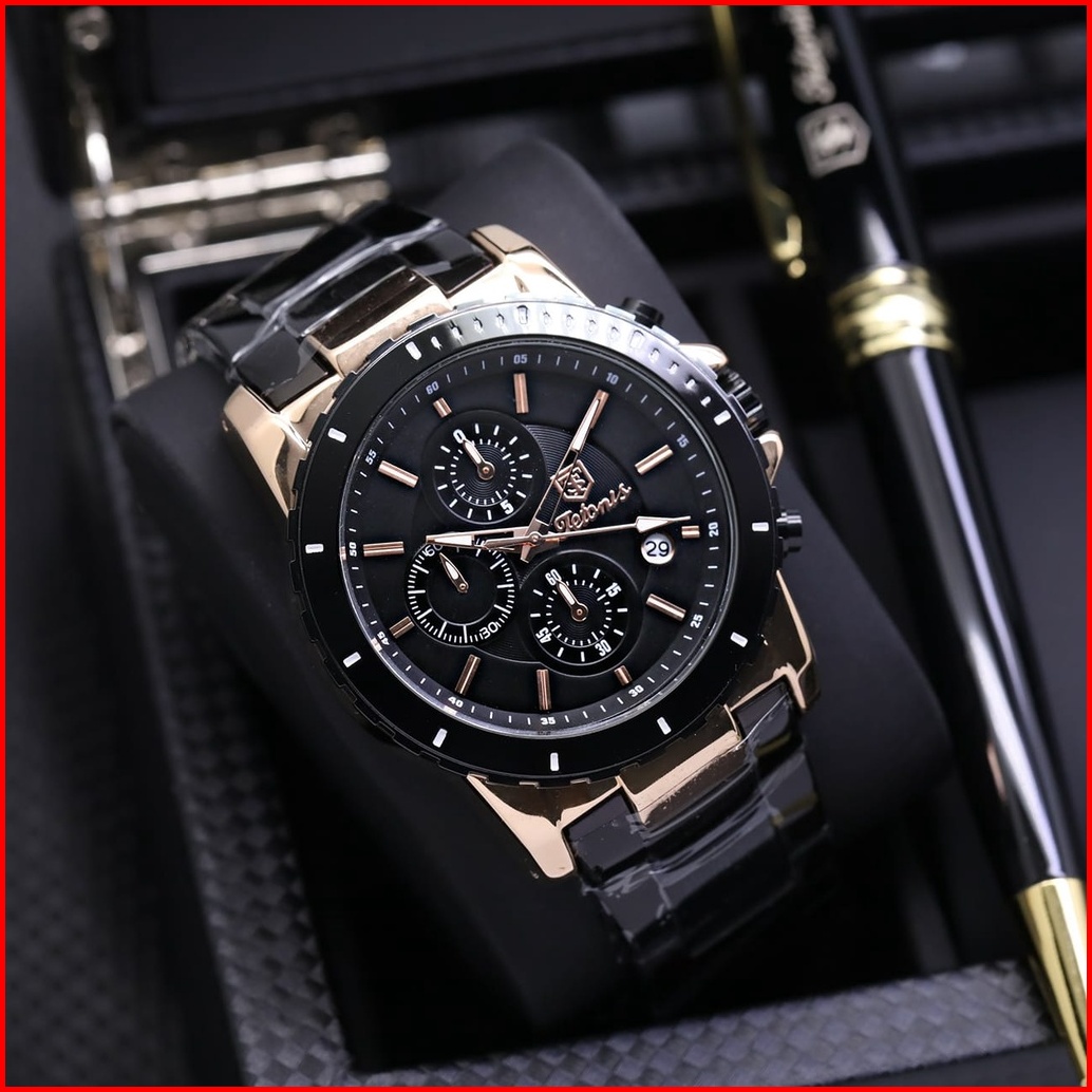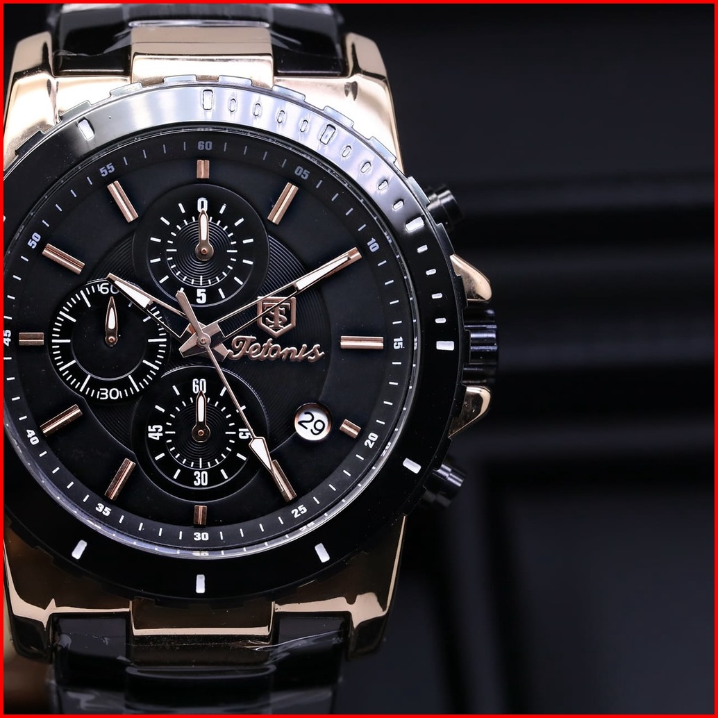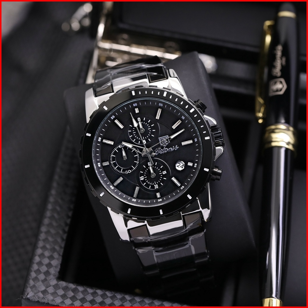 Original Jam Tangan Pria Tetonis Original Rantai Chrono Tanggal Aktif Free Box Pulpen Jam Tangan Fashion Cowok Jam Pria
