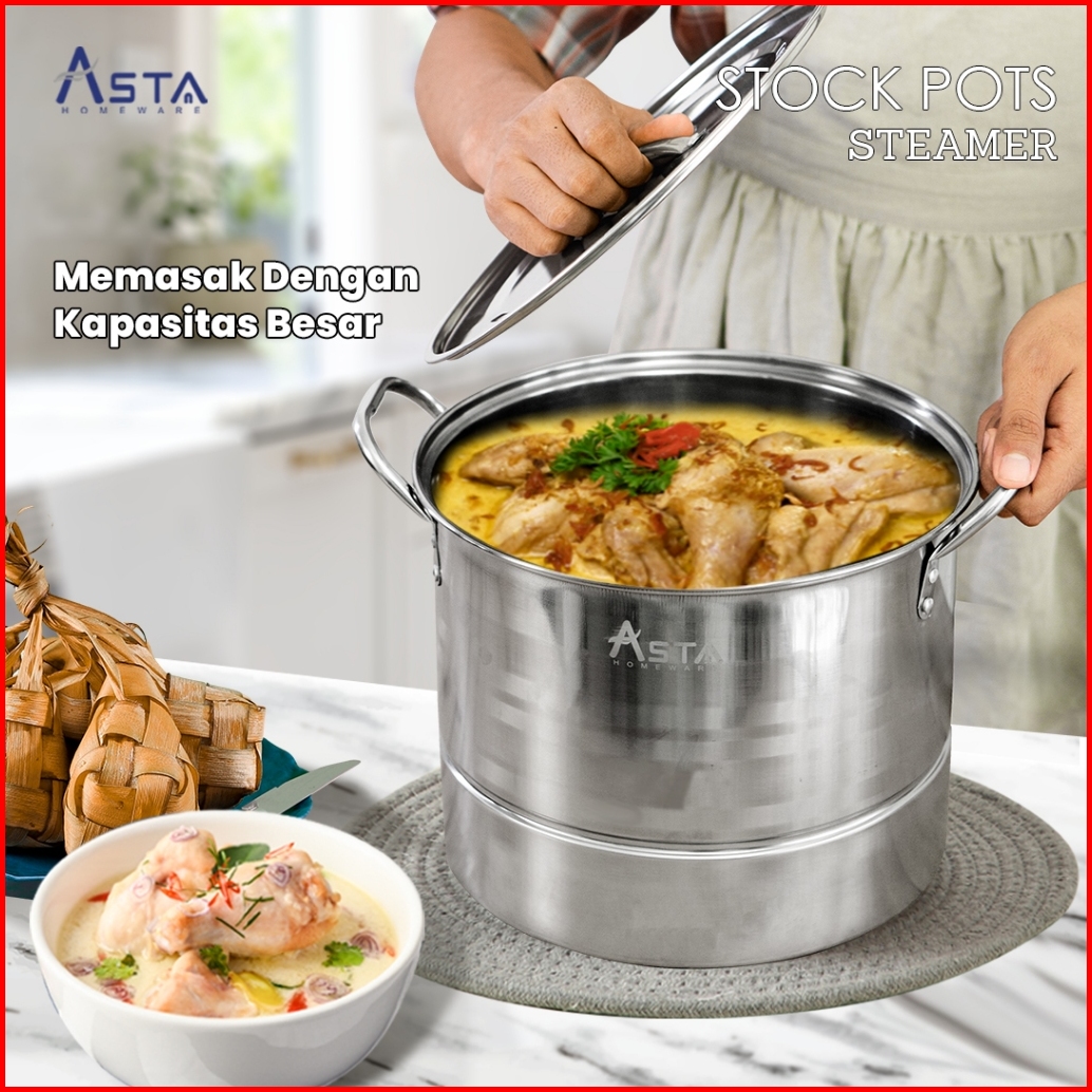 Asta Panci Dandang Kukus Stainless Steel Stock Pot Steamer Dandang Bakso Nasi Tebal