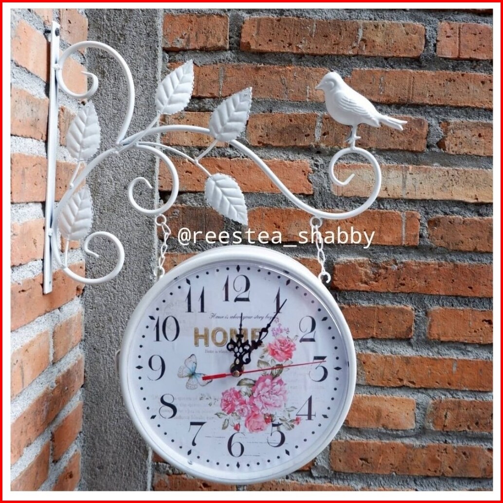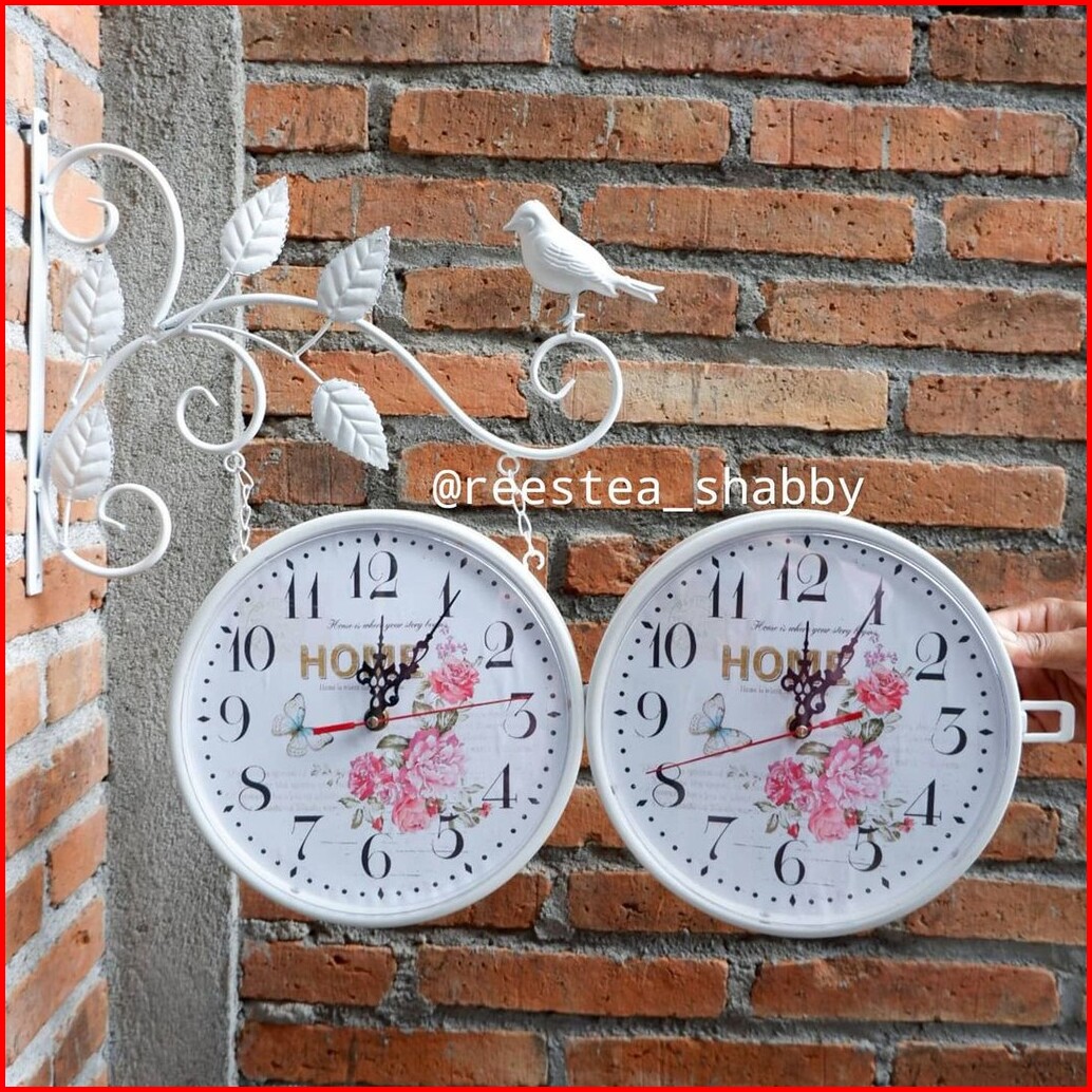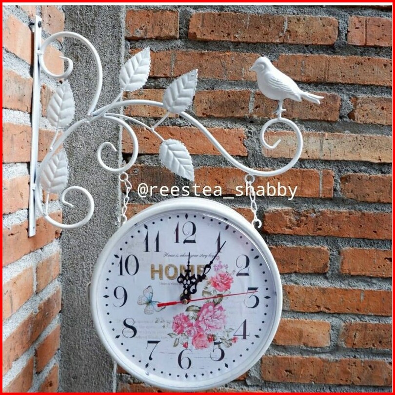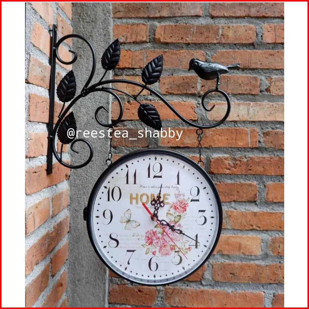 Jam Dinding Gantung Import Model Shabbychic Dua Sisi Bolak-balik Jam Besi