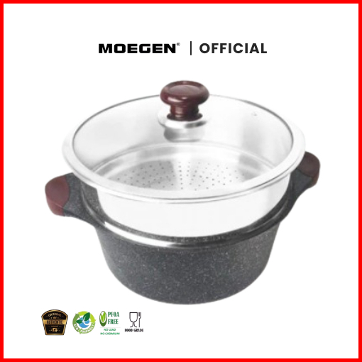 Moegen Casserole 24cm Granite Plus Steamer Kukusan Anti Lengket