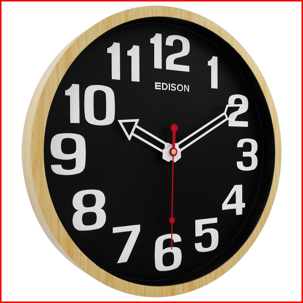 Jam Dinding Edison Sweep Es 362 T50 Wood Timbul Diameter 360mm 36cm