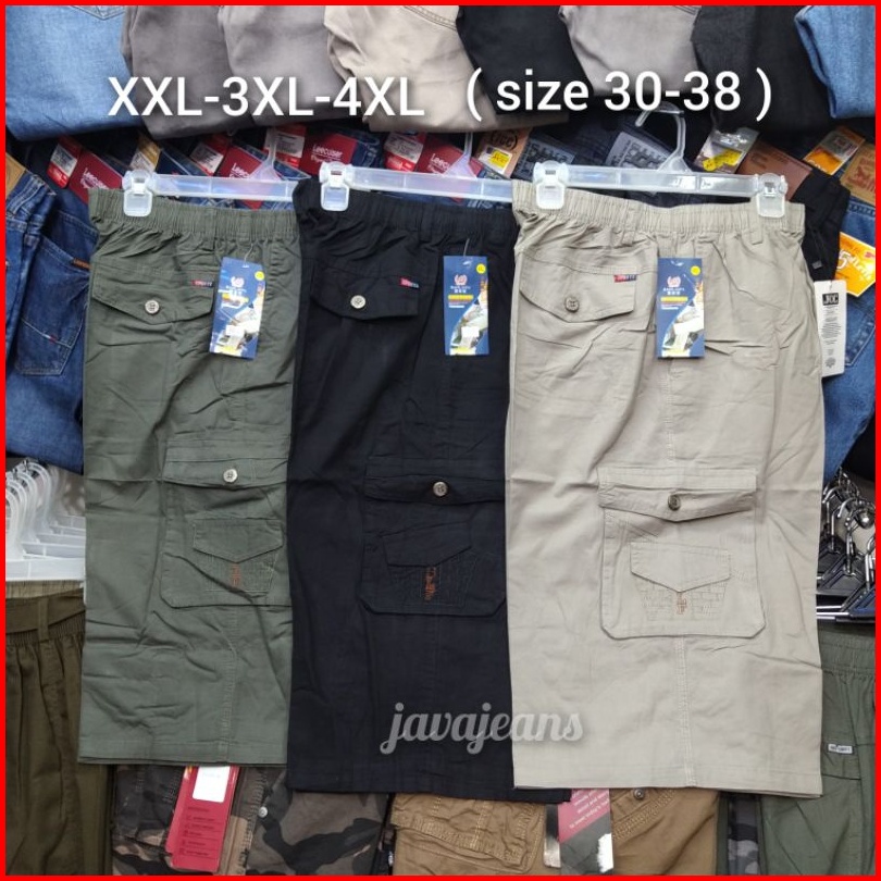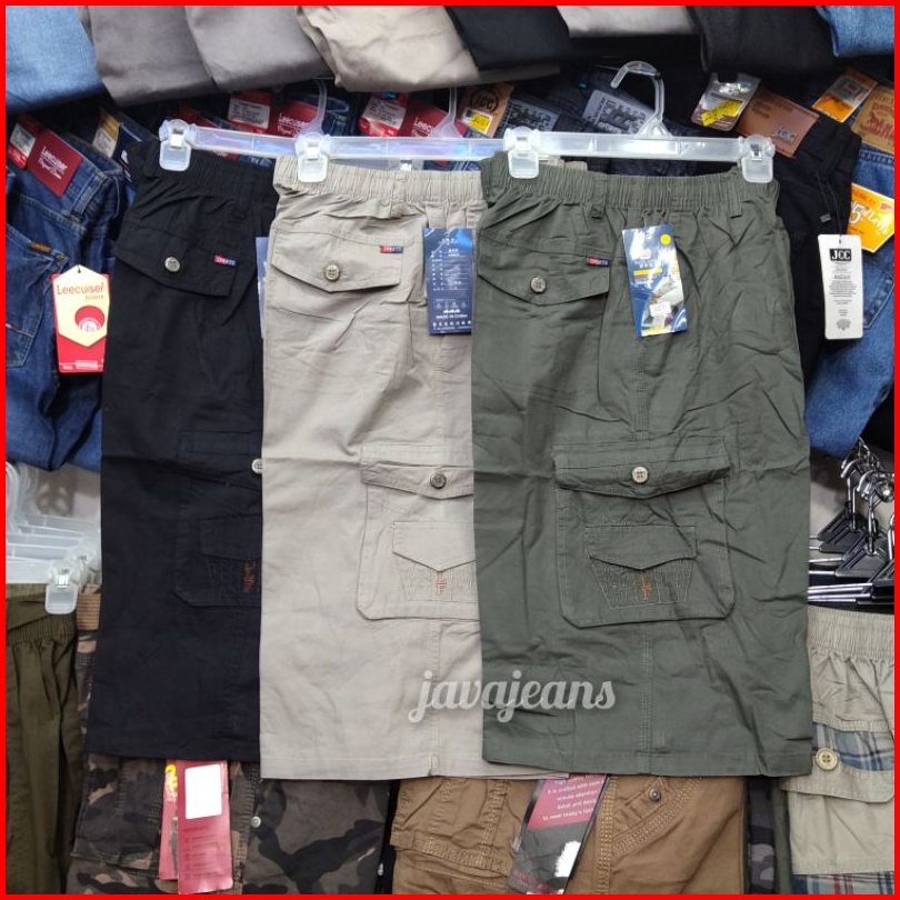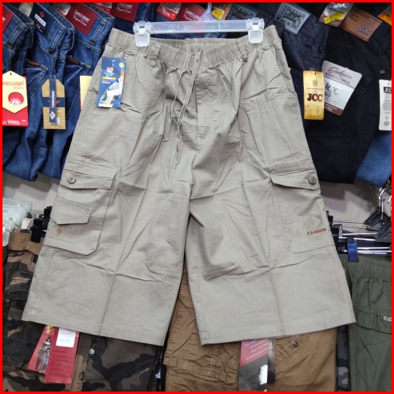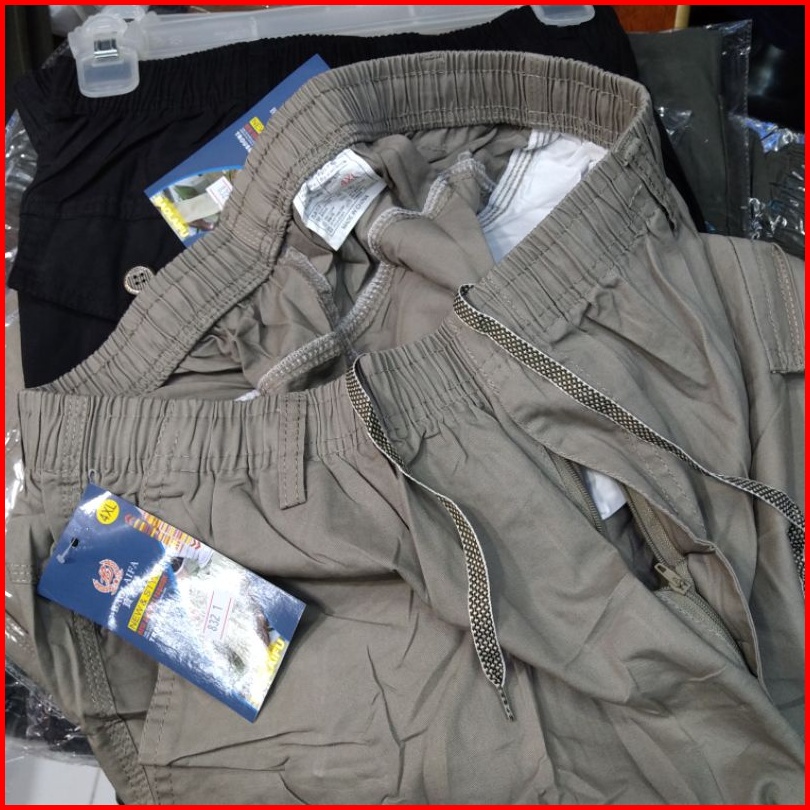 Celana Pendek 7 8 Katun Import Pingang Karet Cargo Kancing Kantong Banyak