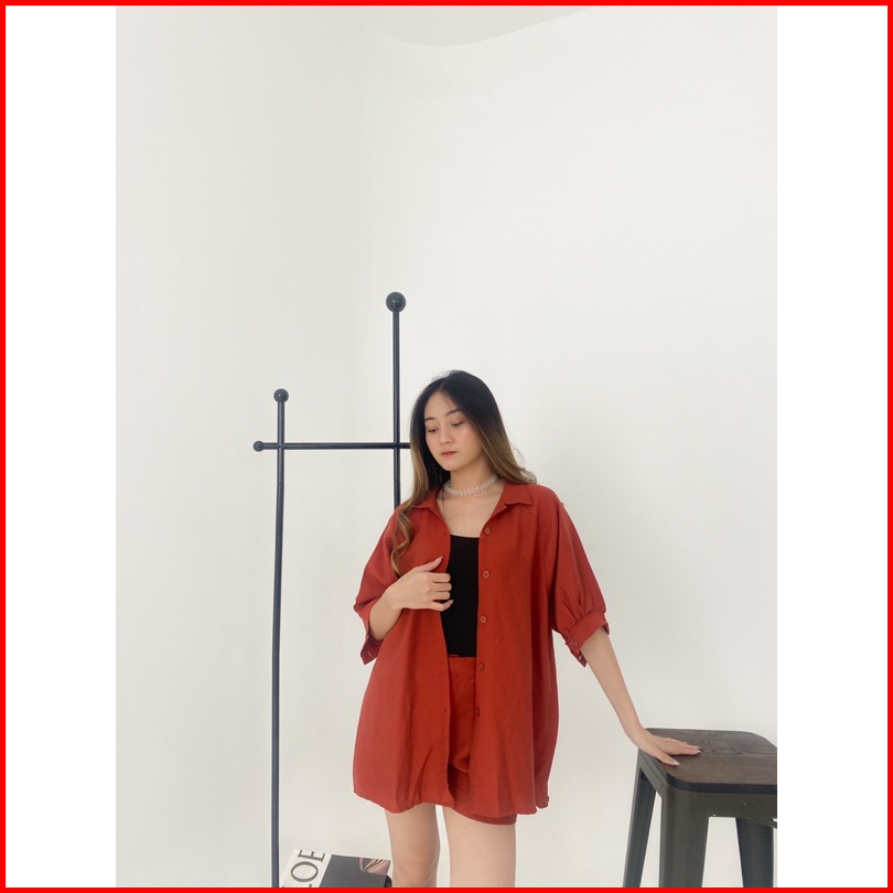 Bartiste Helena One Set Wanita Setelan Kemeja Pure Linen